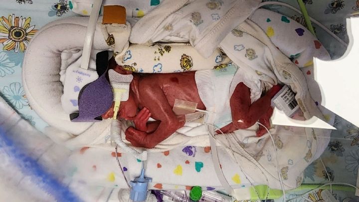 Vivian has a lot of tubes and monitors right now for various things. The main things for them to watch for right now is her brain for brain bleeds, brain development, overall lung development, body temperature, weight gain and more. Vivian’s red blood cells were a little low so they did a blood transfusion. This is common for a micro preemie of this size and they said we should anticipate her to need more of those in the following days.