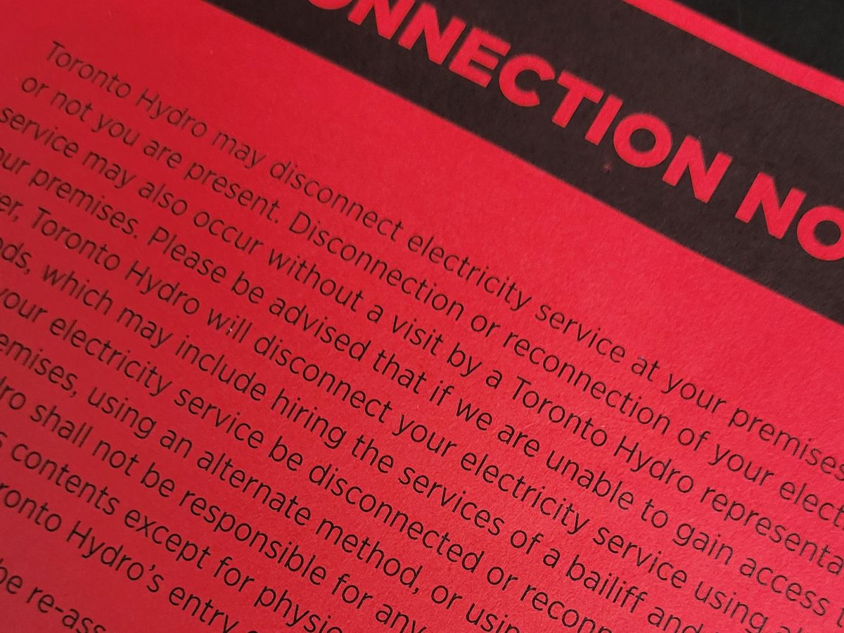 Monday, December 11th, Toronto Hydro came to follow up on the disconnection notice. I said, "that $750 didn't go very far" jokingly.