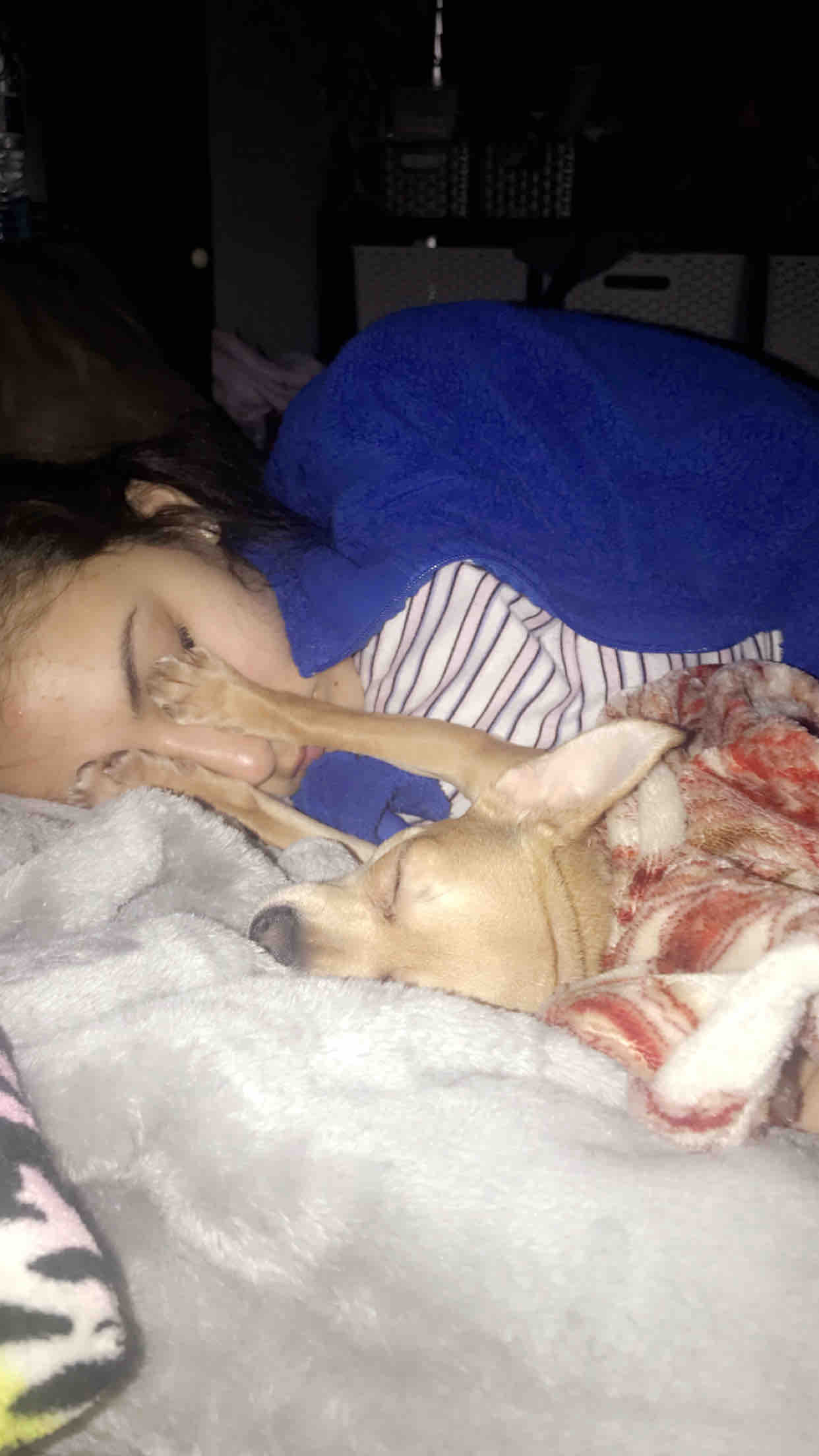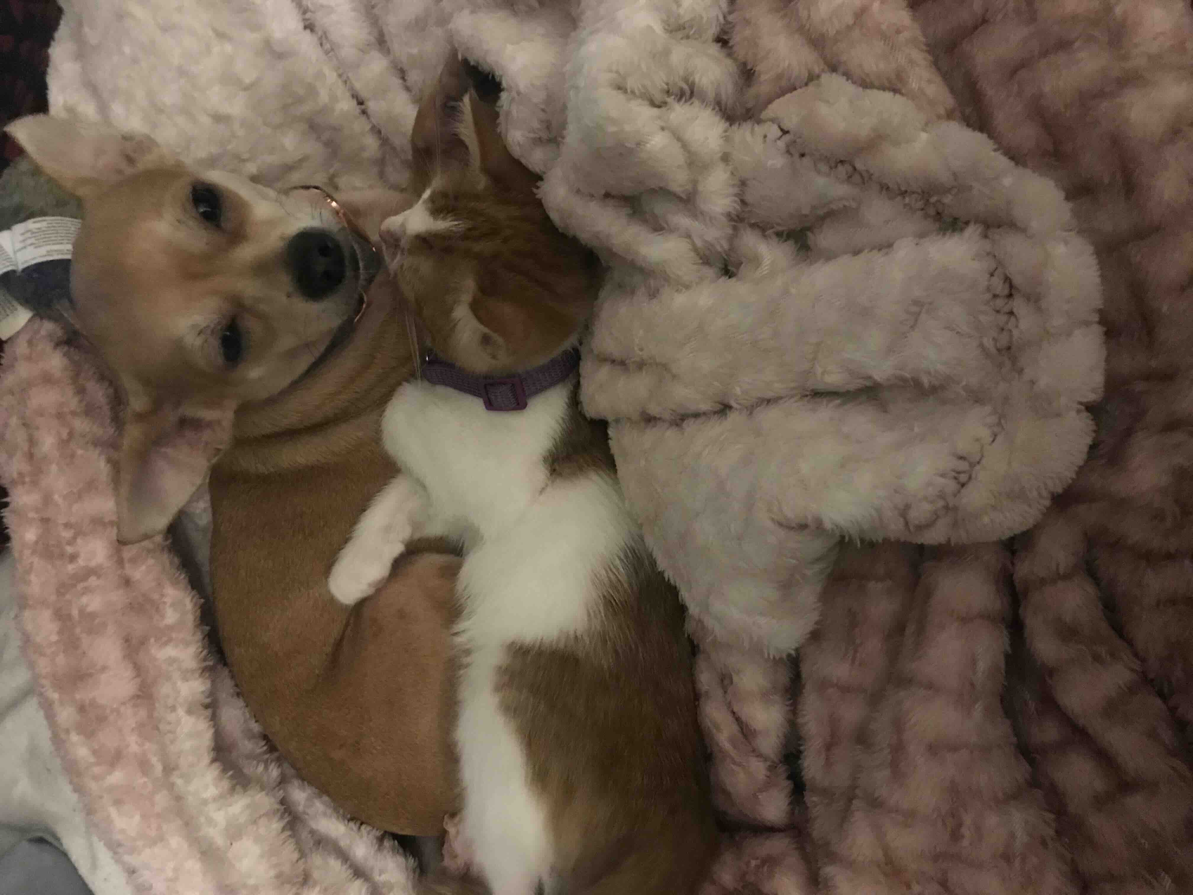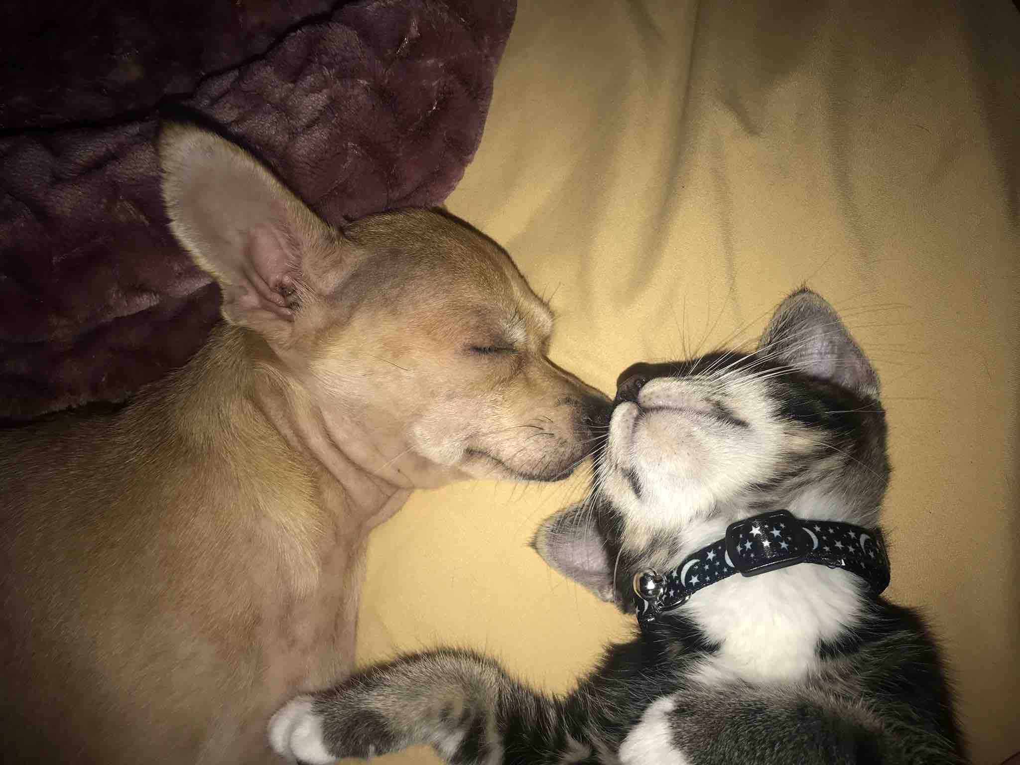 Luna has a kitty brother who’s name is Kush and many fur friends as well. She and him play wrestle quite often and its quite funny to watch. I work at a drug and alcohol treatment program and we have a black lab named Lani. They used to play a lot before Luna got sick. Lani checks on her every day. We also have a fish, and the first thing she does when we get to work is run up to the fish tank to say good morning.