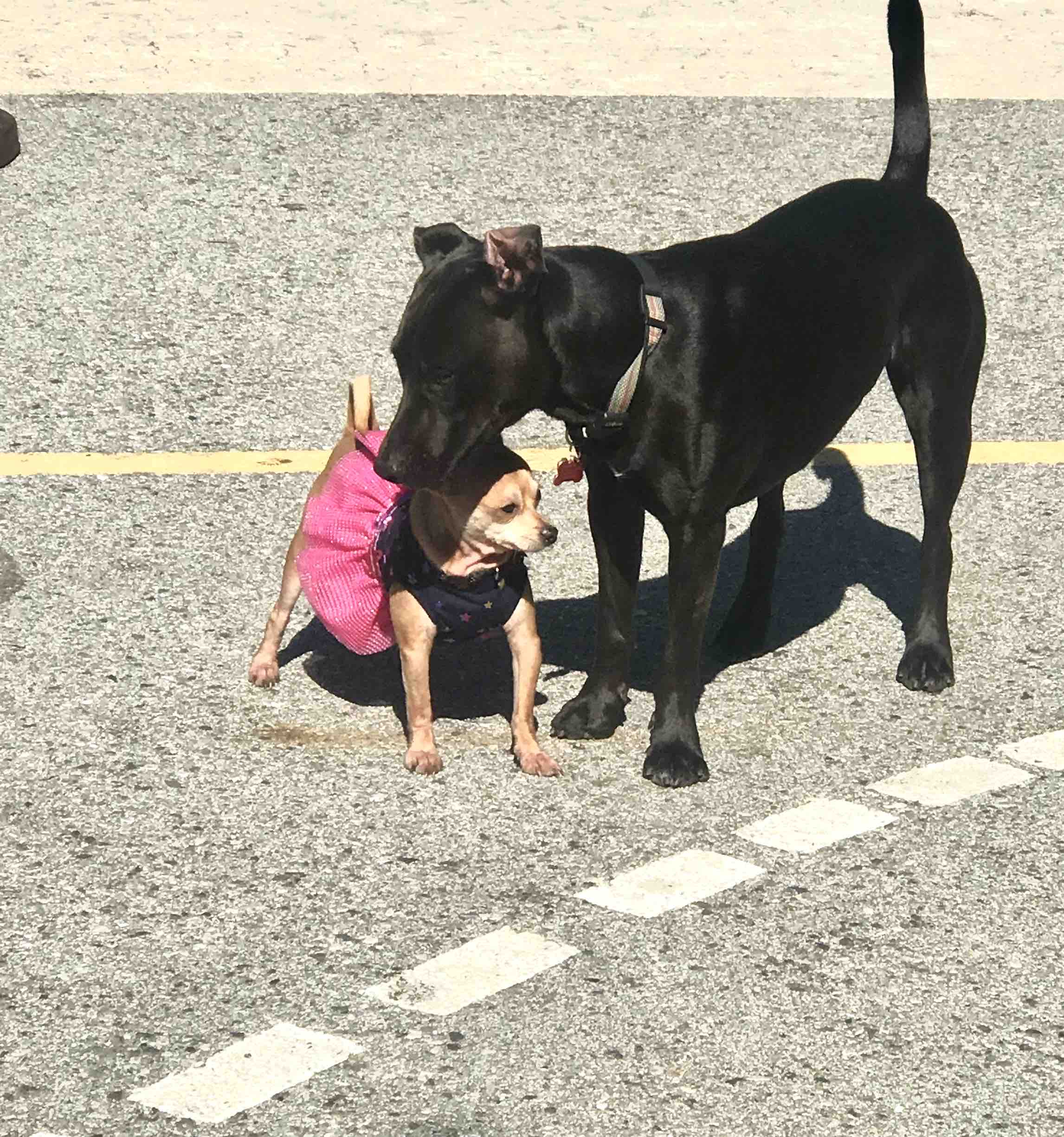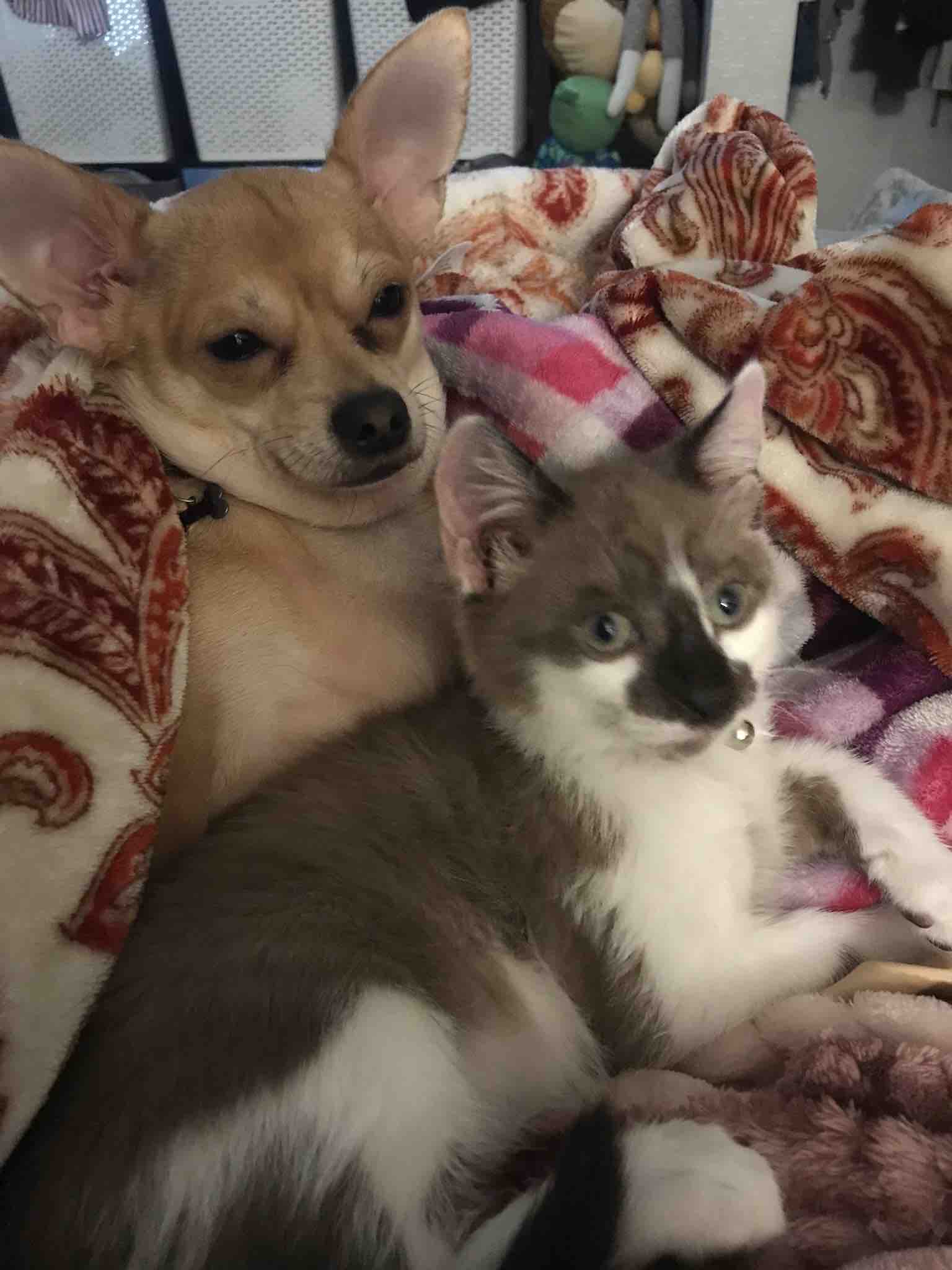 Luna is my registered support animal who goes everywhere with me including my two job sites. We are incredibly attached to one another. She loves all animals no matter the size. She is eager to meet and greet them. She was very loving to the kittens we fostered. Almost motherly and she was just a baby herself. She is very protective of me and my daughter, very untrusting of male figures and people in uniform. Never bites but does bark.