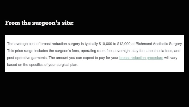 I am currently in the process of reaching out to schedule my initial consultation with a clinic local to me that specializes in reductions and top surgeries. Until I schedule this, I will not know the exact cost I can expect, but per their website I can assume it will be between $10-12k after everything is accounted for.