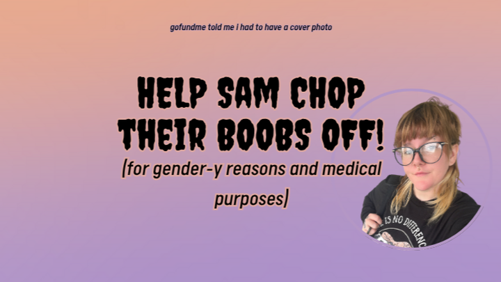 Hey there! I'm Sam, and I am raising money for a gender-affirming and medically necessary radical breast reduction surgery.