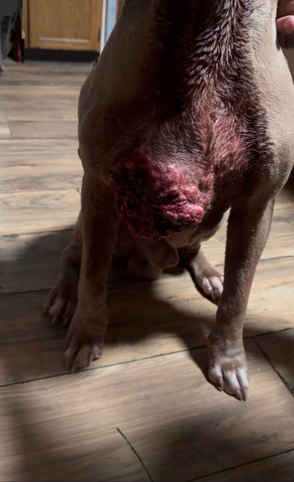 Loki is an 11-year-old blue nose brindle pitbull who urgently needs veterinary care. He currently has three fatty tumors—on his chest and back—that need to be checked and possibly treated.