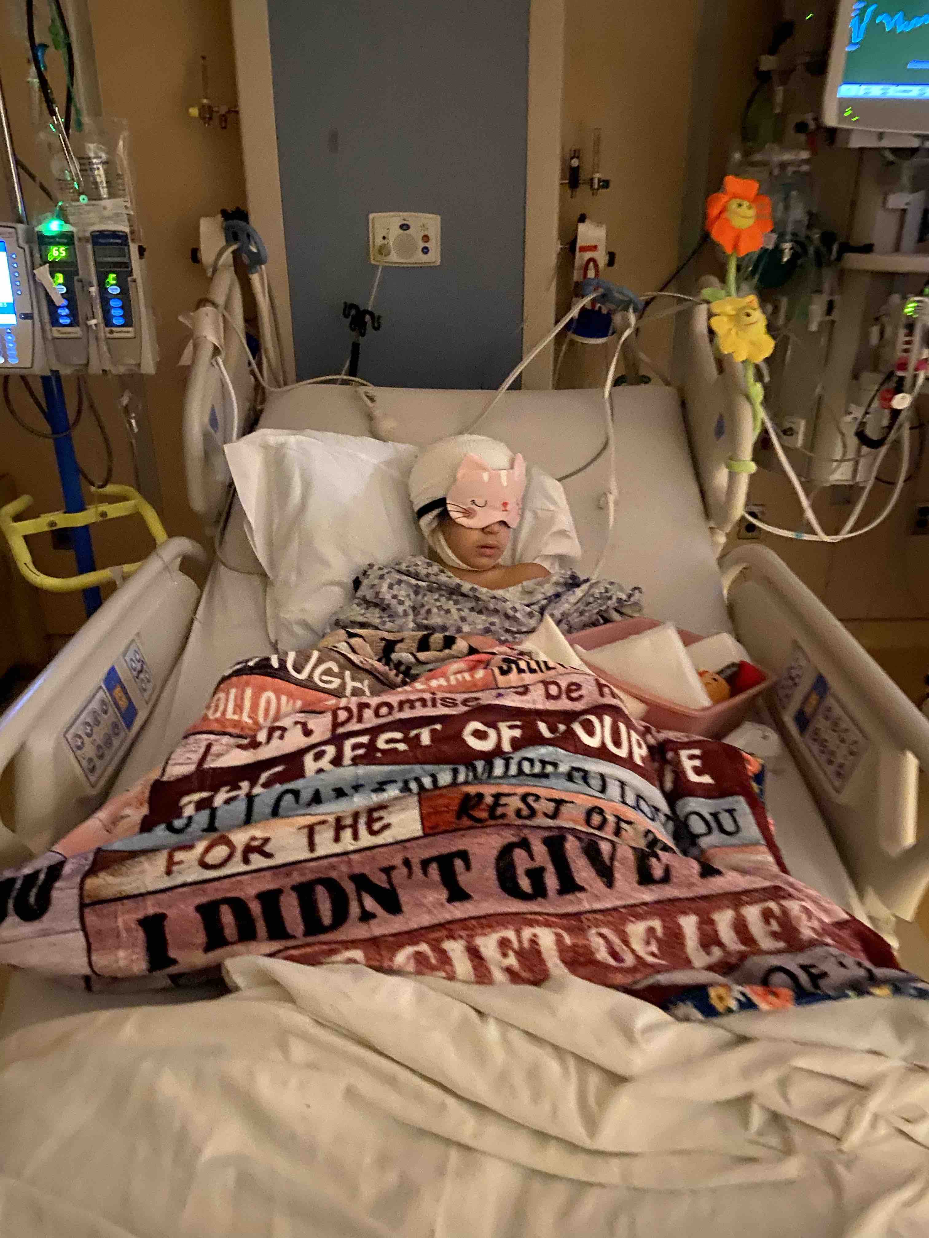 Unfortunately, our journey has taken a difficult turn and Mya had to have an emergency, 3rd craniotomy this past month of November—two months after her 7th birthday. Her tumor grew slowly and significantly, and due to the sensitive location in the brainstem/mid-brain, surgery very was difficult.