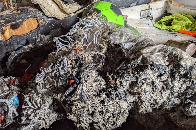 Middlesex County - On the frigid morning of Tuesday 1/11/2022, a storage complex in Parlin, New Jersey caught fire. We are grateful that there was no loss of life or serious injuries reported but unfortunately our club was directly impacted. We were amongst the 15+ local families and businesses affected by this incident. While we hoped that we would "only" suffer smoke or water damage, our unit caught fire as the flames spread from unit to unit. Many of the items the children use week-to-week were reduced to ashes and mounds of melted plastic. Our soccer goals that were recently dismantled were also in the storage unit, as well as balls, uniforms, nets, refrigerators, photos, tents, cones, discs, training equipment, etc. We had the opportunity to assess the damage after the fire marshalls cleared the area. Unfortunately, only 6 cones and a table were salvageable.