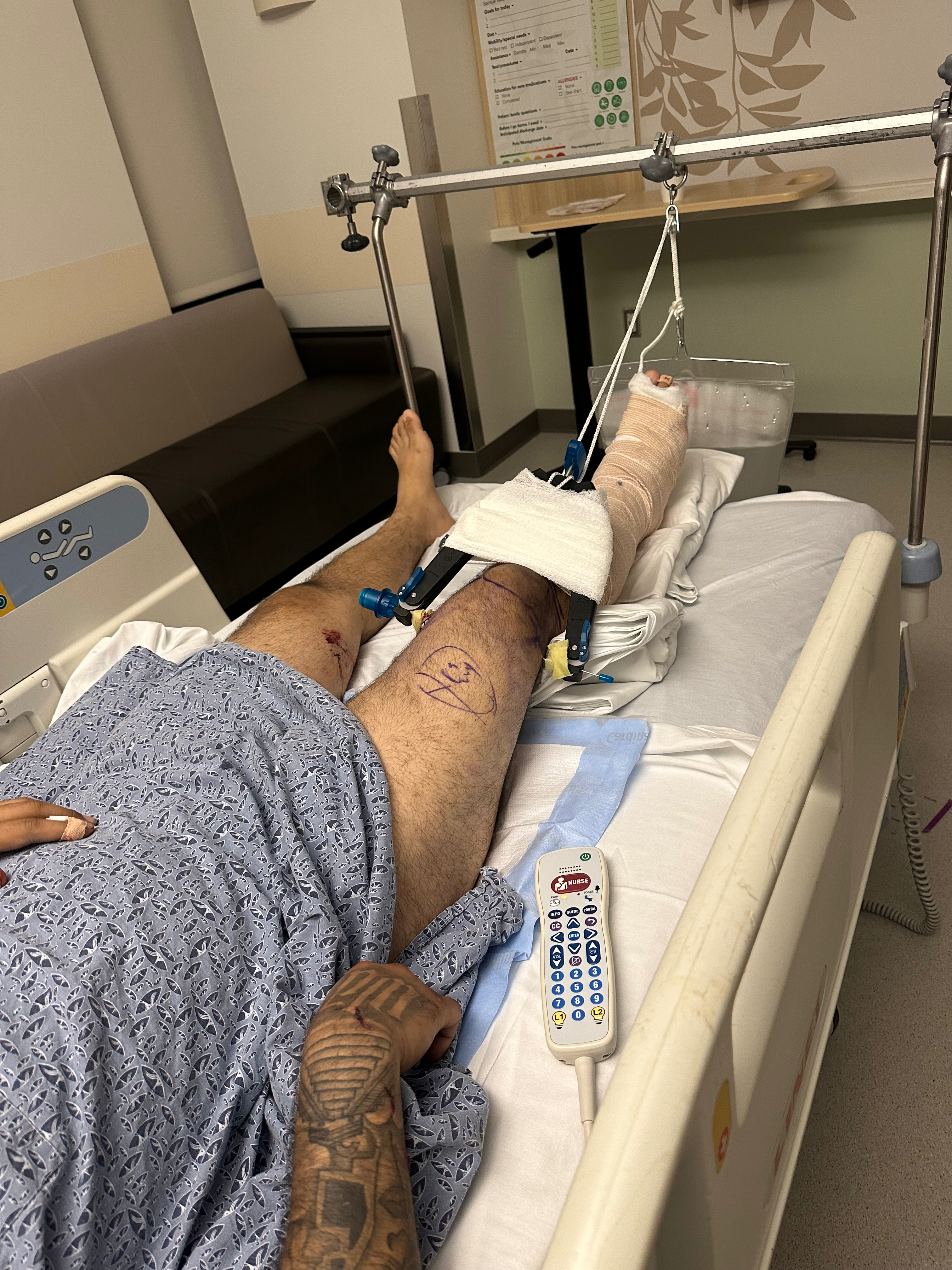 Currently, he is scheduled to have 3 surgeries due to the accident and is still getting evaluated for further injuries since they have not determined if he has any spine injuries. So far, he needs two surgeries on his leg and ankle and one for his elbow. His liver is lacerated due to the accident.