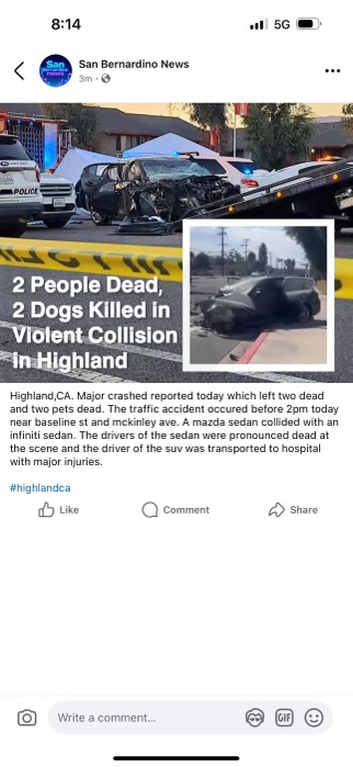Hello, my husband and both fur babies were involved in a car accident where the other driver hit them head-on. Both of our dogs passed away on impact.