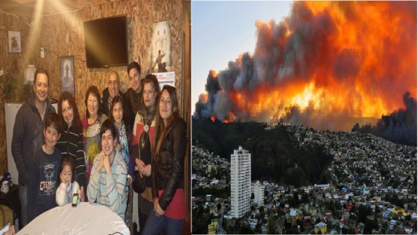 The Diaz, Peñaloza, and Castillo families lost their homes in a large wildfire that began Yesterday, April 12, 2014, in Valparaiso, Chile.