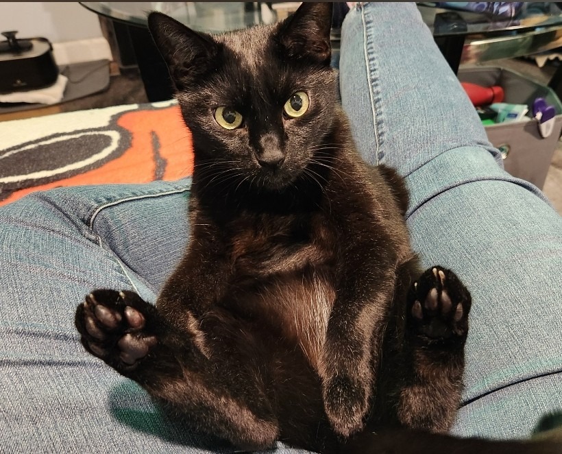 Shadow is a nine-year-old domestic shorthair. My husband, Ryan, and I adopted him in 2017 so that our other cat could have a companion while we were at work all day. Those of you who have met him know that he’s an incredibly friendly cat who normally has a TON of energy (sometimes to the vexation of his older brother, Felix)! Shadow is a lovable lap-cat that loves cuddles—although maybe not as much as food!