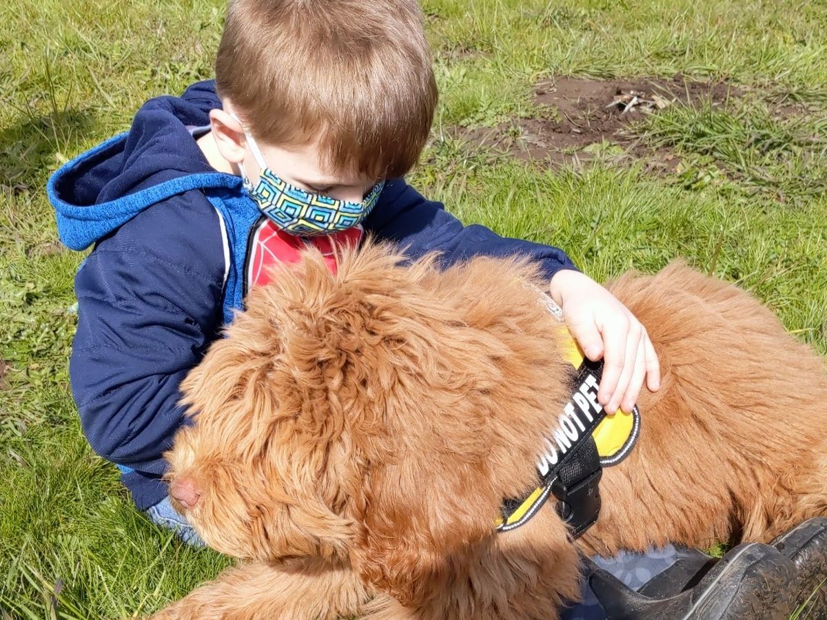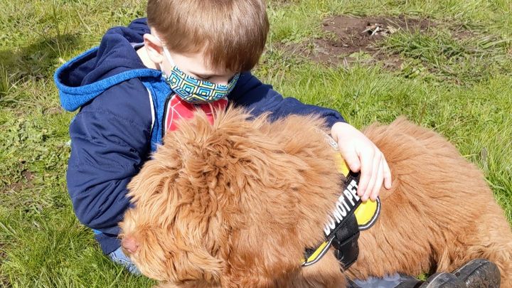 However, this doesn't come without a price tag. Service dogs are not cheap. They are professional companions, working dogs. They are very well, and intensively trained and the process in getting one, difficult. Most facility dogs come with a price tag of at least 20k and a 2 or more year wait. COVID has also affected and interrupted trainings for many facilities who are no longer accepting applications. We have found a great alternative though! We were recently put in touch with a local family who just went through the process of receiving an autism service dog. They purchased the dog through http://www.trailsendlabradoodles.com/  who breed amazing and high quality Labradoodles specifically for service dogs. Then they had the pup custom trained to be their daughter's service dog with http://www.charlotraining.com/ . The whole process was seamless and very positive and they absolutely love their pup. He has worked wonders for their child. The cost and process will much easier and realistic for us to work with than obtaining a facility dog. The cost for a dog is $2800 with a $400 deposit. The cost for training is around $7000.