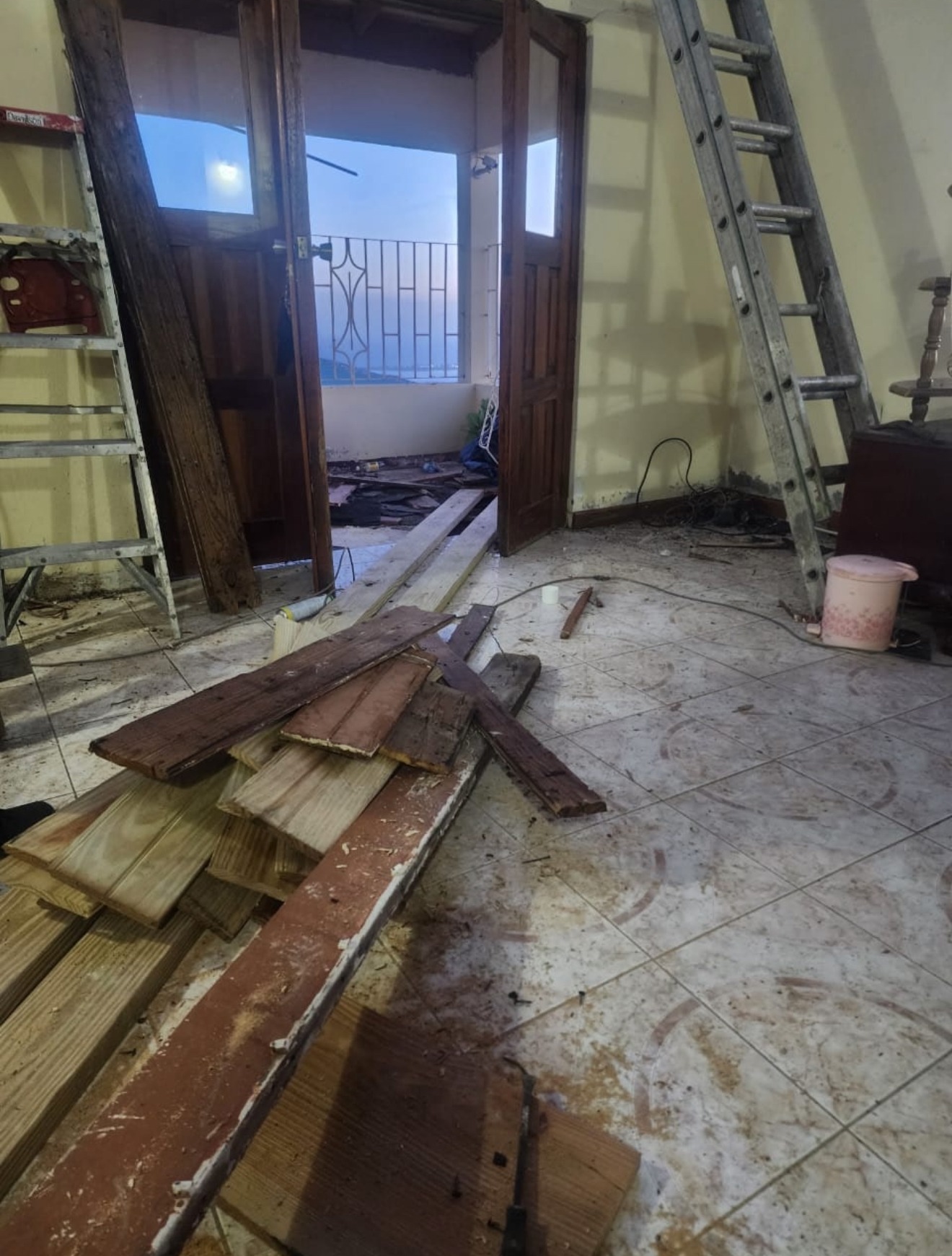 My grandmother and my mother were left fully exposed to the sky and rain pouring into the top floor, water leaking downward.