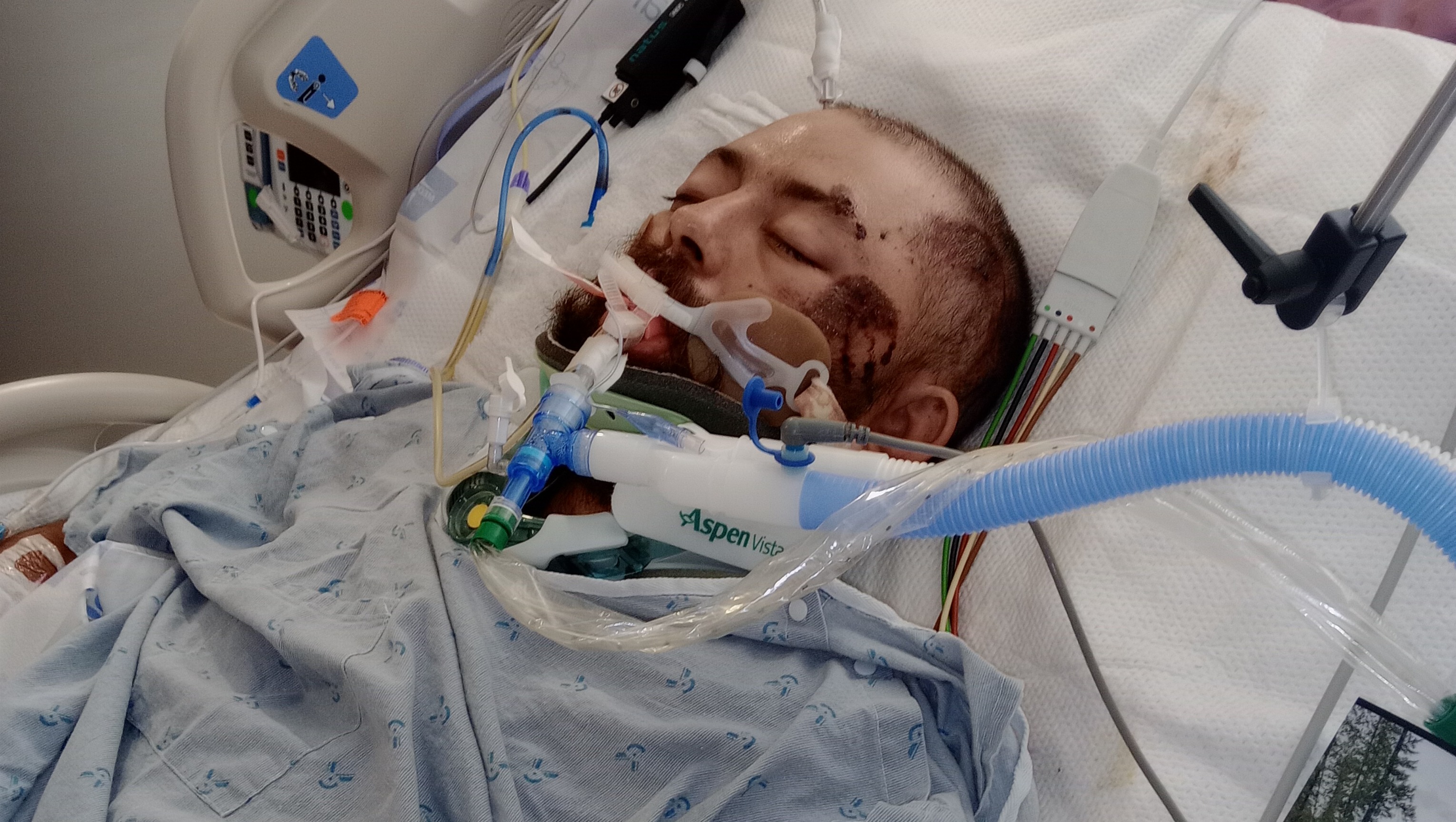 Colton suffered a major brain traumatic injury just over a week ago from a motorcycle crash, that only involved him. He's been in the ICU at Sacred Heart Medical center in Spokane. This past week has been terrible and scary for us as we didn't know what was going to be Colton's future. Kara and her husband (and baby) flew in immediately.... we've all been making the 3 hour rt daily to be at Colton's side. Great news; Colton progress has been exceptional. He has a broken clavicle and shoulder blade but he's awake and cognitively doing well, remembering a lot, other than he thinks he arrived at the hospital in an airplane, that landed on the hospital! Today, he's trying to escape while Kara and nurses are securing him.... I don't know how long rehab will be, how long he'll be down, (not long, I'm thinking) but, if you want to contribute a small donation or even just comments and prayers, it's all greatly appreciated. I'm sorry I didn't post anything publicly sooner, it's been a stressful week for us!