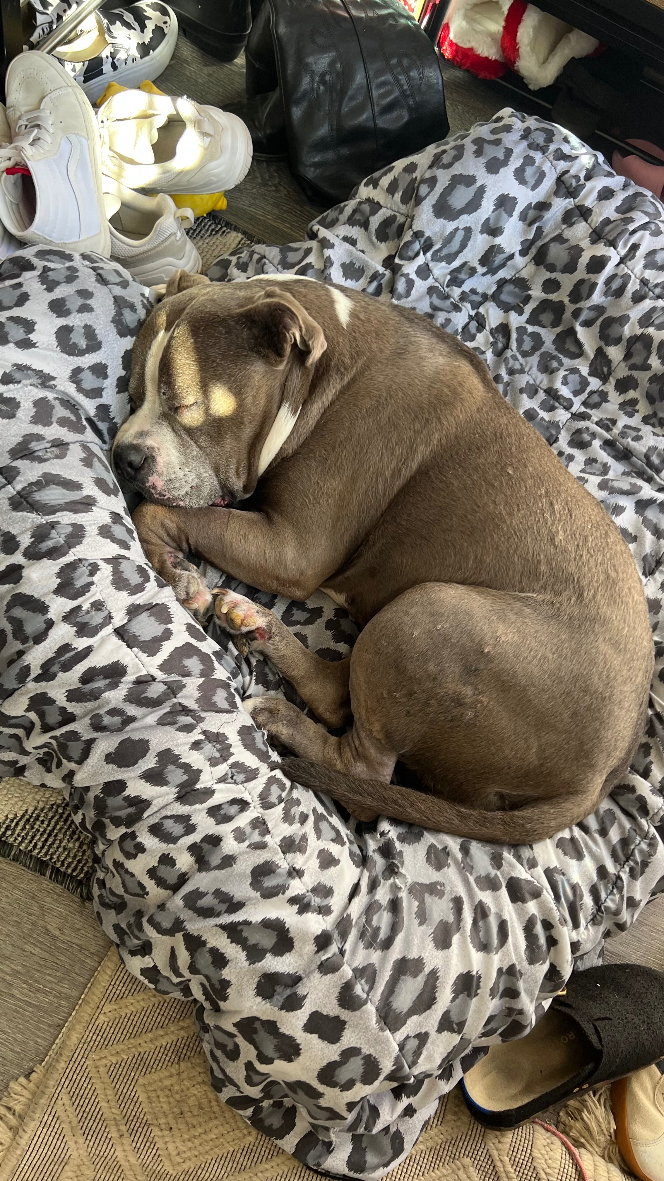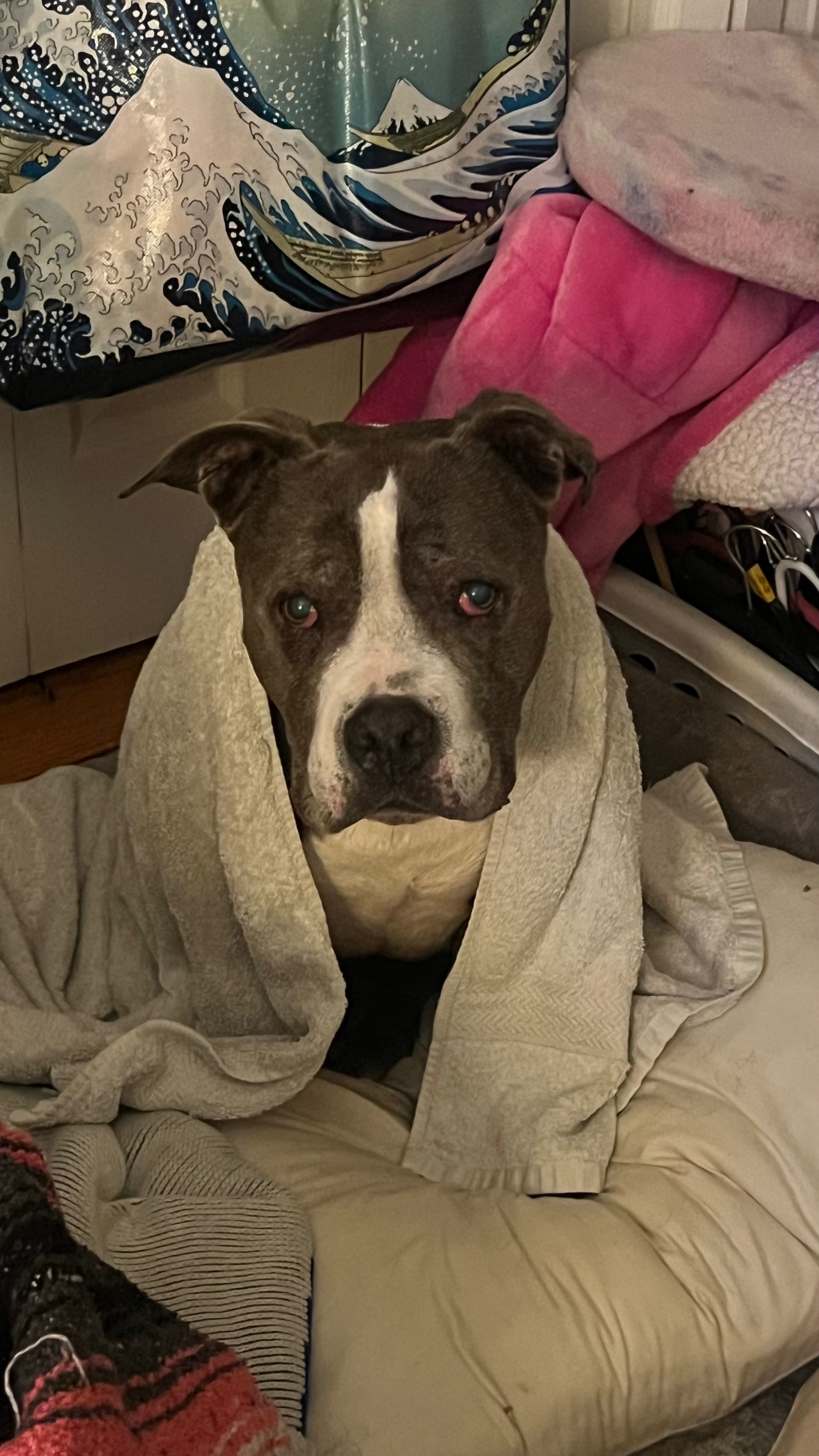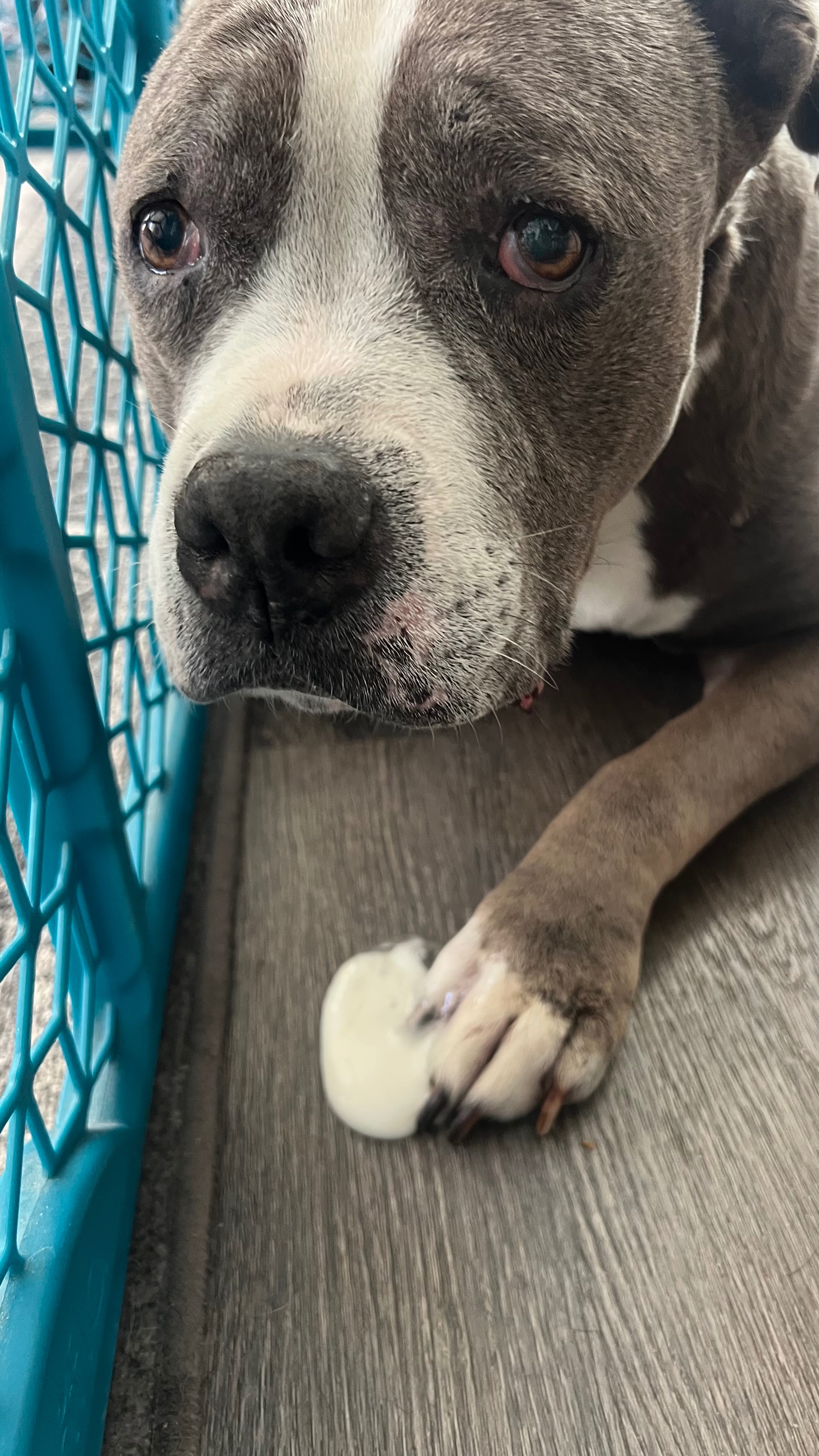 I’m writing on behalf of my dear friend, who is going through one of the hardest moments of her life. Her beloved senior pit bull, Miley, was rushed to the hospital with severe pneumonia and serious complications.
