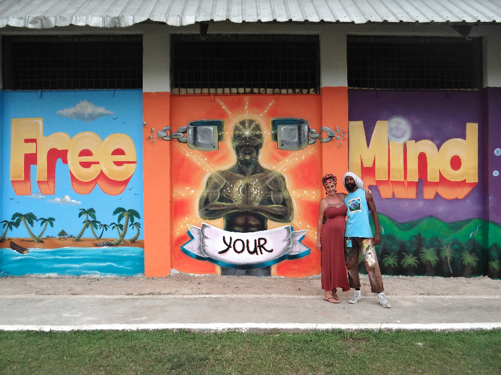 Where did it all begin? Six years ago I began spending half of every year in Belize working with local communities to develop and empower one another. I work with the NGO Peacework and have also started my own community organizaton called ComeUNITY Works which focuses on using ART as a tool for social change. In 2013, I found a beautiful childrens book that was illustrated by Ras Jahsun of FariStudios. The book was called Indigo Blume and it was about a little girl that inspired her peers to beautify their neighborhood. It touched me and I wrote him to see how I could get the book for some of the schools I work with in Belize. Immediately we connected, not only did he offer books but asked if there was anywhere he could do a mural in Belize. I could think of 10 places. Within 2 months we had sketches for two mural sites in the town of Dangriga, the roots and culture capital of Belize, and we secured funding for the materials for the two-week project. Pictures of these inspiring and humbling projects can be seen on ComeUNITY Works facebook page. (https://www.facebook.com/comeunityworks?ref=hl )