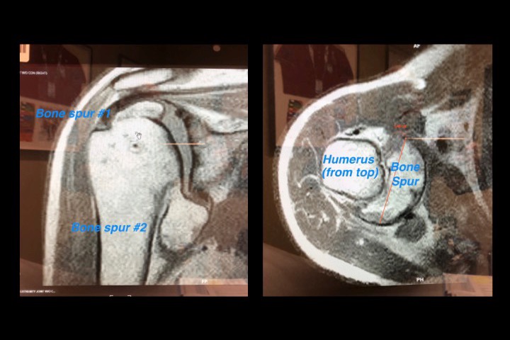 Flash forwarding to late fall 2018, I was in so much daily pain I asked God if we could do something to remedy it. I truly wish to do this healing work, so many miracles kept happening, but I needed help. I was guided to see a different set of doctors. Upon my first meeting gazing at my new MRI, the new doctor met me laughing saying he never had seen such a thing. I asked, "Didn't the cartilage grow back?". He laughed more and swung the screen in my view. Instead of cartilage, I had grown 2 huge bone spurs! One was on top of the humerus and wouldn't let me raise my arm above 60 degrees without hitting my clavicle. The second grew on the interior of the humerus and was almost double the diameter of the bone. When I laid on my right side it would push all my upper ribs out. Both had me going bone on bone whenever I used my arm, but fortunately kept me from destroying my shoulder capsule, so that I could still have a shoulder replacement - a different miracle than I'd hoped for, but a miracle none-the-less! I was told that medical advancements had happened such that shoulder replacements were now as successful as knee replacements. So my adventure in my next step with God began.