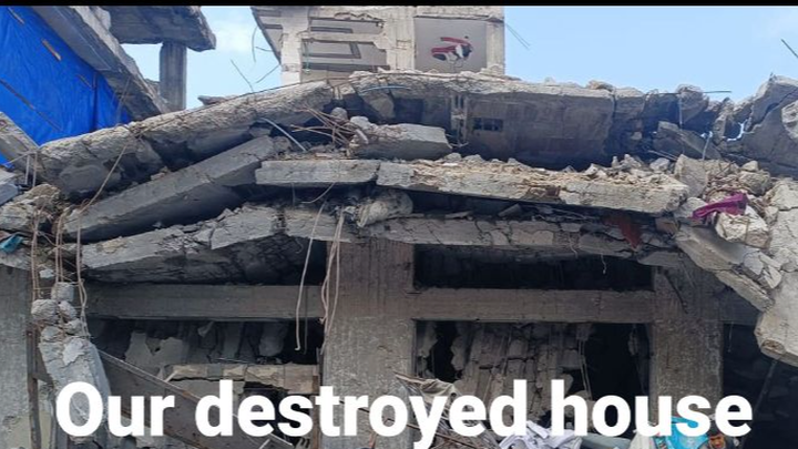 and hopes. Our home, which provided shelter and security for our family, was completely destroyed. Mr. Mahmoud and our family were left with nothing, and we were forced to move from one displacement area to another, and we are now living in a small, fragile tent without basic necessities and in miserable conditions.