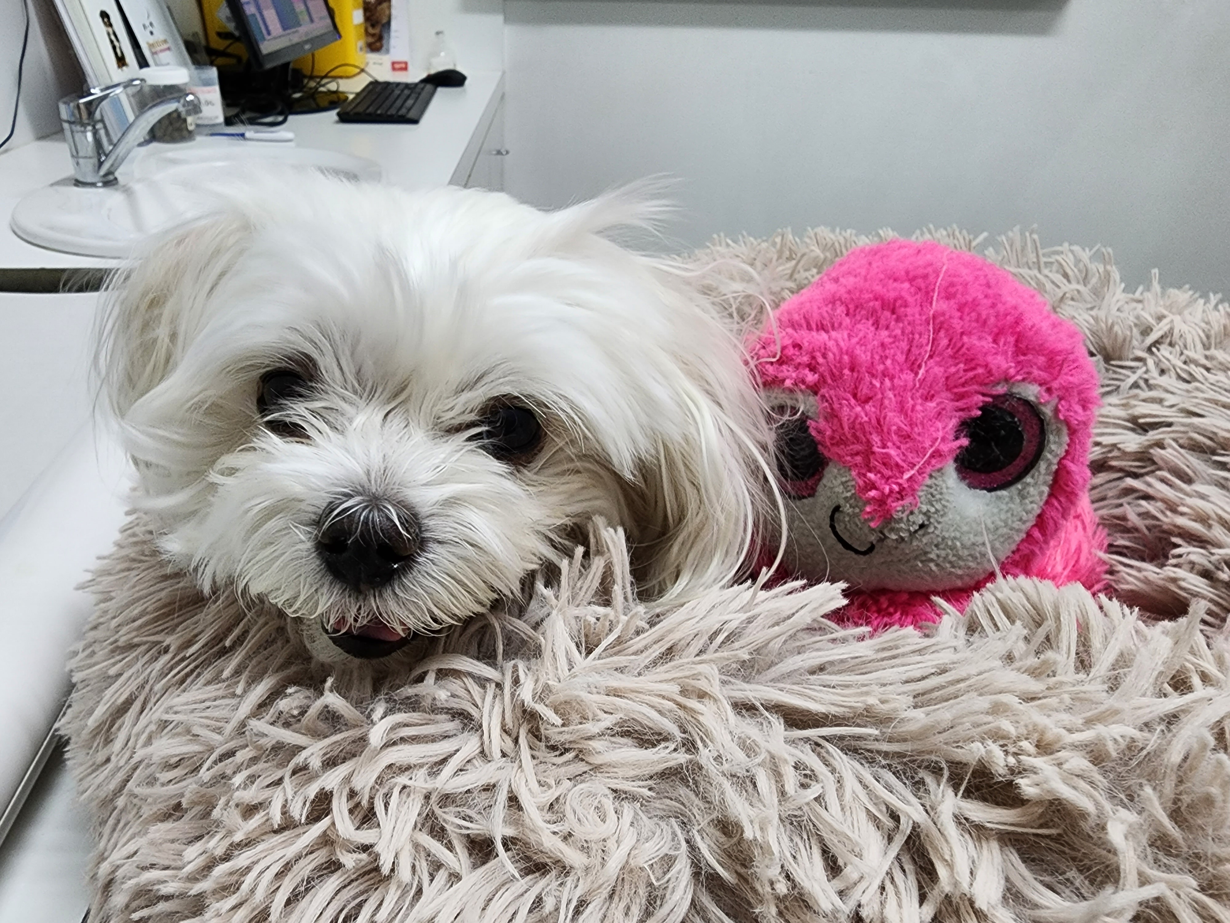 My name is Emily and I'm Poet's mum. Poet is an almost nine year-old (almost sixty-three year-old in human years) Maltese, who recently had to have her gall bladder removed due to fluid build-up and severe inflammation.