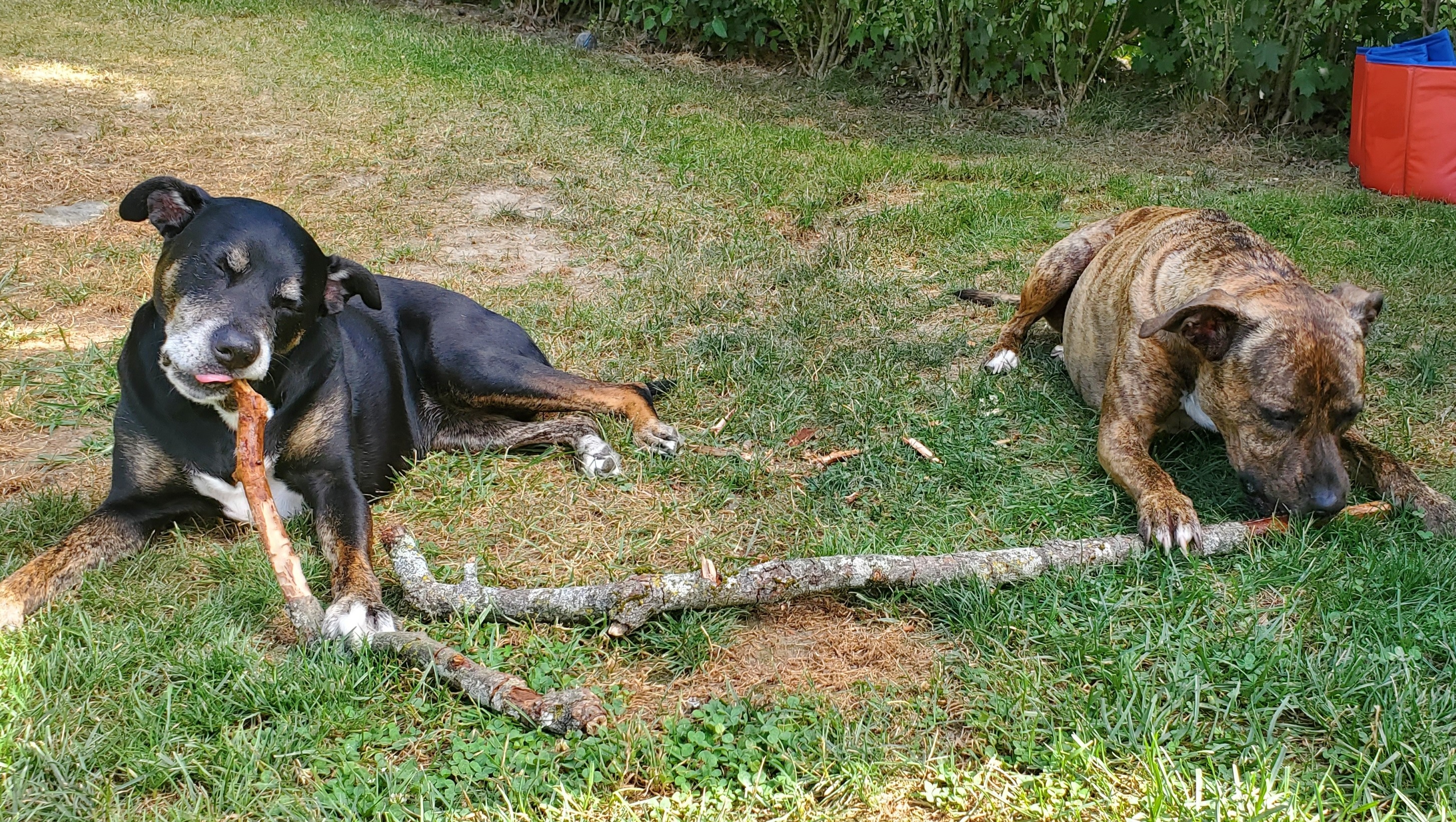 In spite of all of these health scares, Atreyu has always been a wonderfully happy dog. She has always loved being in nature, and she spent many, many days hiking with us through beautiful wilderness, free as can be. She became part of a bonded pair when Chris and I adopted our youngest dog Bastian as a puppy. She doted on and mothered him, and they became totally inseparable.