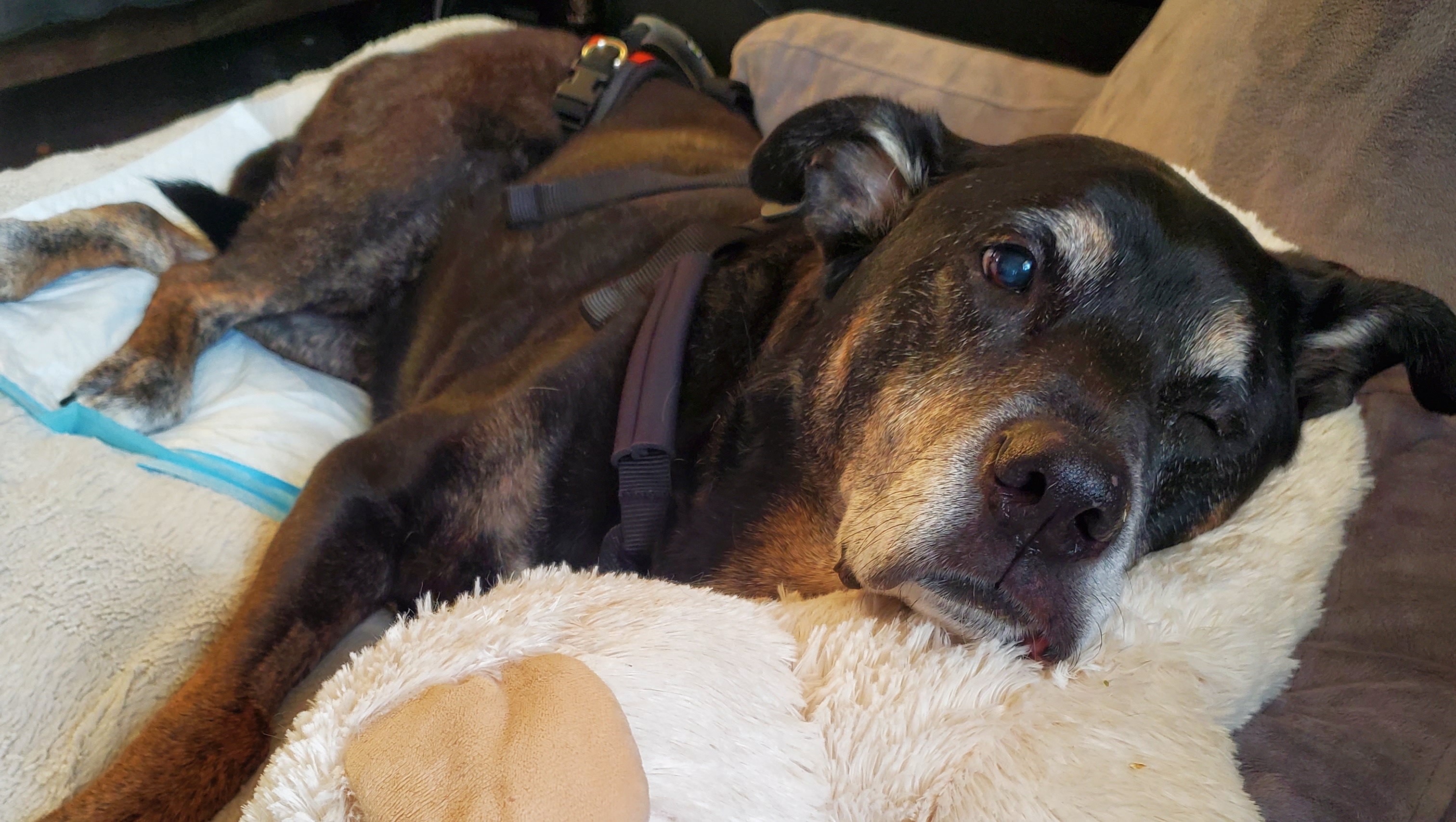 In her remarkable 12 years of life, Atreyu has overcome Lyme Disease, a CCL repair, a mysterious loss of function in one eye, Cushing's Disease, and a seizure disorder. She has always been a fighter, and never lost her spirit or will. I am grateful for every day with her!