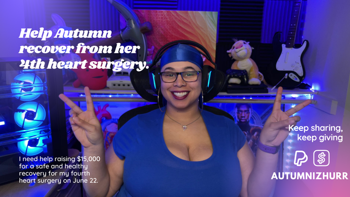 Hey everyone, I am Autumn or AUTUMNIZHURR I am your favorite 3x heart surgery patient, 2x car crash survivor, variety content creator, and disability and diversity advocate. When I'm not streaming or making content, I am conquering multiple chronic illnesses. I have mastered the ability to smile while in a constant state of anxiety and pain. I always wanted to be strong.