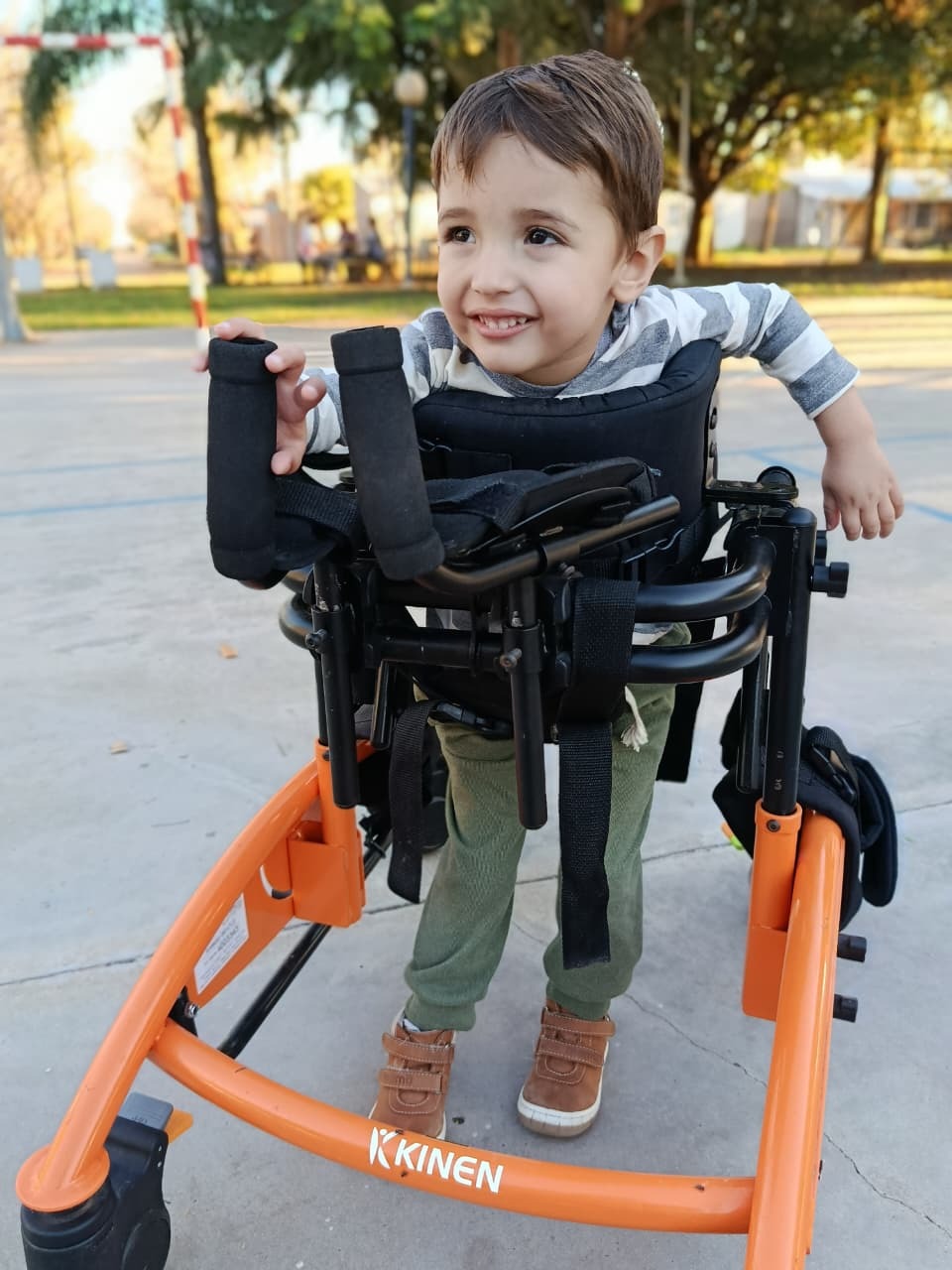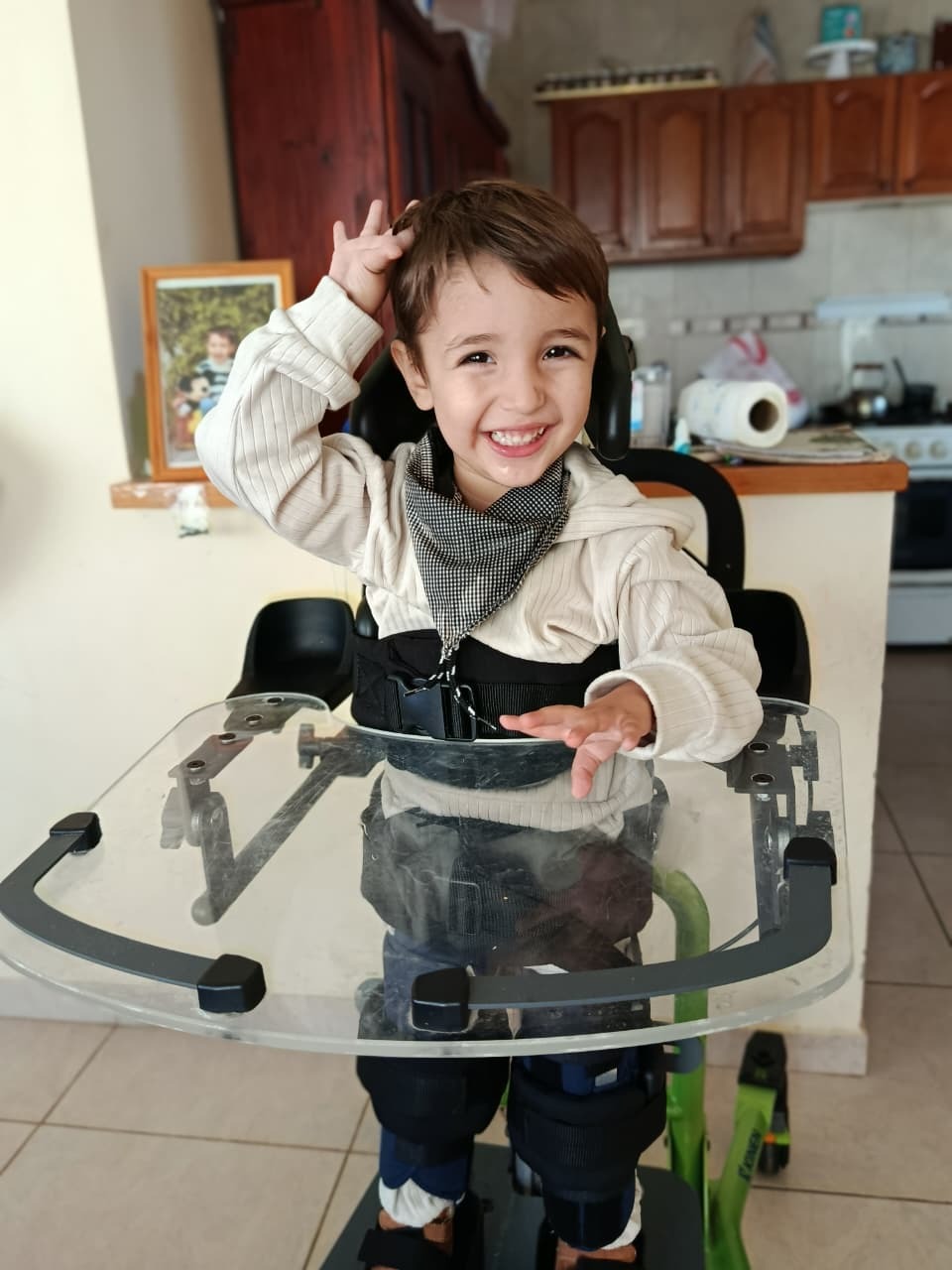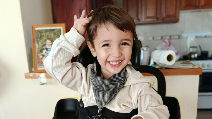 No hace mucho, Emir podía mantenerse de pie e interactuar con mayor libertad. Hoy ya no puede hacerlo, ni tampoco hablar, y su condición continúa empeorando. Cada día realiza múltiples terapias — física, ocupacional, del habla y más — solo para intentar frenar el avance de la enfermedad.