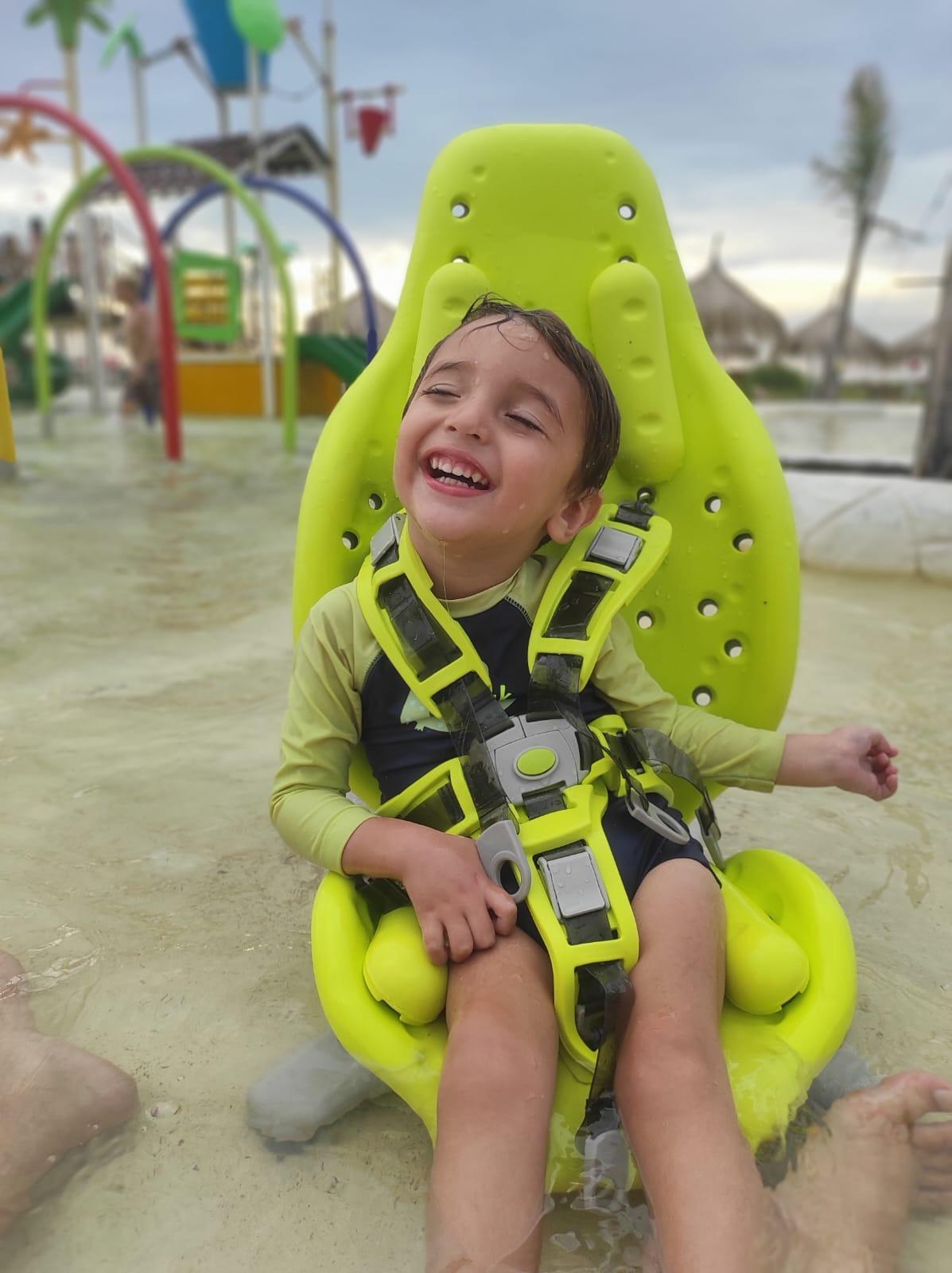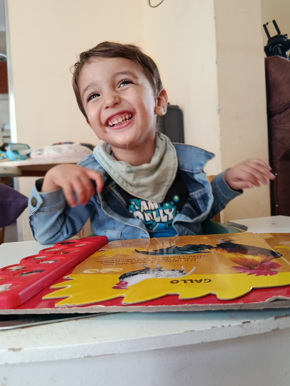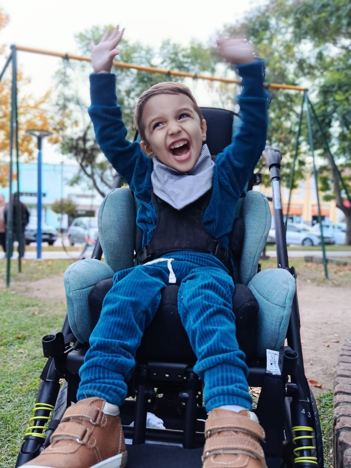 No hace mucho, Emir podía mantenerse de pie e interactuar con mayor libertad. Hoy ya no puede hacerlo, ni tampoco hablar, y su condición continúa empeorando. Cada día realiza múltiples terapias — física, ocupacional, del habla y más — solo para intentar frenar el avance de la enfermedad.