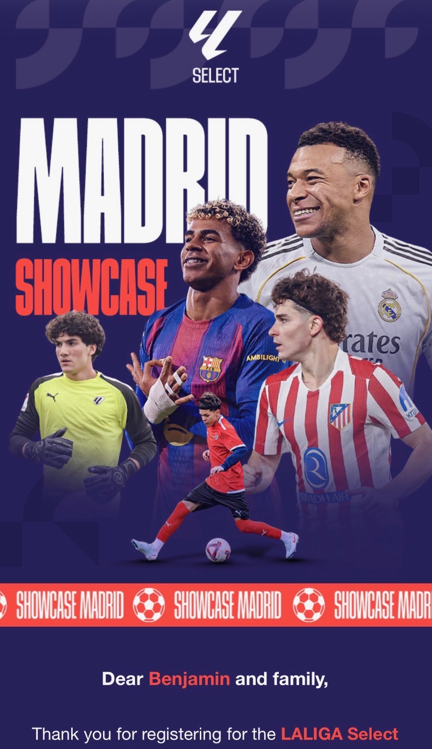 Our 12-year-old son, Benji, has dedicated so much of his life to soccer. He has spent countless hours at practices, games, and training, always giving it everything he has. Because of all of his hard work and determination, he has been selected for an incredible once-in-a-lifetime opportunity to travel to Madrid and train with a La Liga academy.