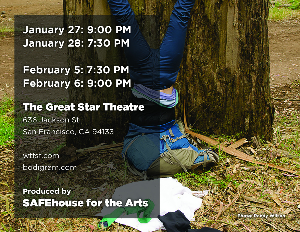 Eureka!( We might find it.) is BodiGram’s public service announcement to the people of San Francisco and the Bay Area. We have become victims of the tech takeover and the rat race it has created. Eureka!( We might find it.) gentle pokes fun of our tech addiction and work drone state through movement. It’s far from your traditional modern dance piece. We take interpretive dance to the highest level of campiness, throw in a little punk rock, and shear athleticism resulting in a humorous reminder of the importance of getting outside and back to nature.