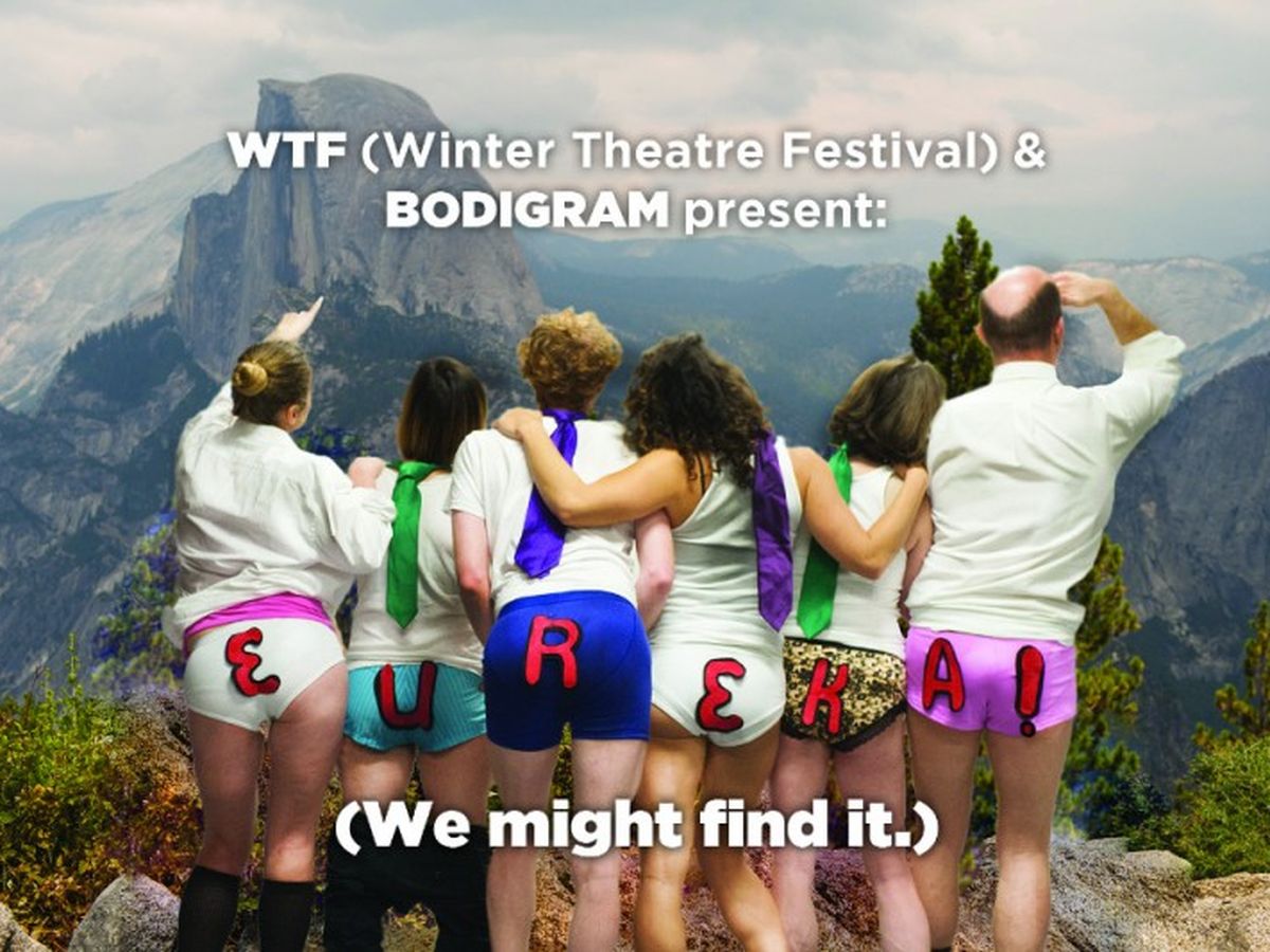 Eureka!( We might find it.) is performed by Shannon Preto, Jordan Brooks, Shira Yaziv, Kelly Kemp, and Kristin Torok. Sound score arranged by Mike Turpen. Video installation and lighting design by Kedar Lawrence. Text and choreography created by Blair Bodie.