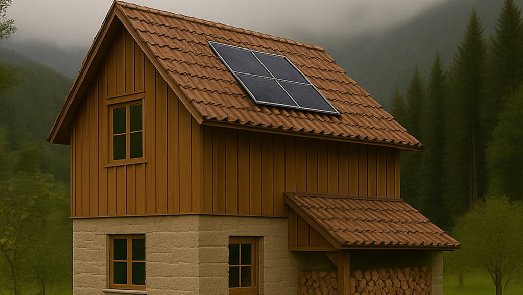 Ristrutturazione ecosostenibile: Installazione di pannelli solari, impianto di raccolta dell’acqua piovana, e un sistema di scarico ecologico.