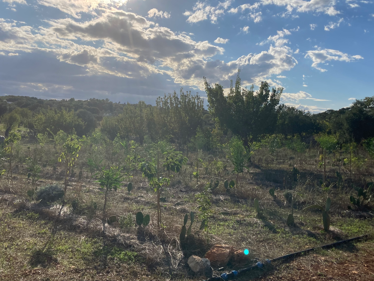 Dal dicembre 2023 a oggi ho messo a dimora 291 alberi da frutto - fichi, giuggioli, cachi, albicocchi, nespoli, feijoa, gelsi, susini, meli, peri, melograni, carrubi, noci, noccioli, vite - insieme a circa 3.000 piante arbustive e arboree che supportano l’ecosistema.