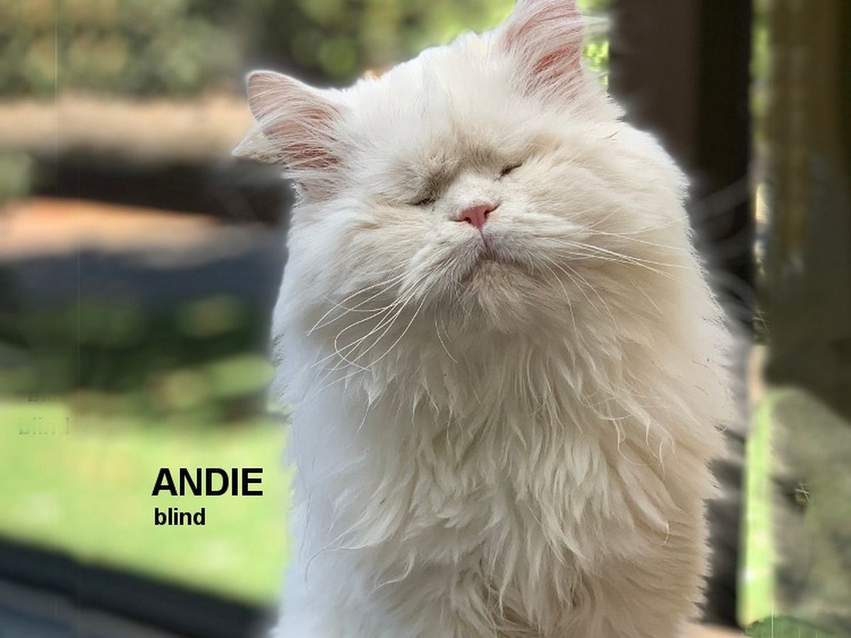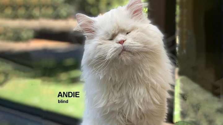 Andie is a blind cat, currently in a shelter in Santa Rosa, California.