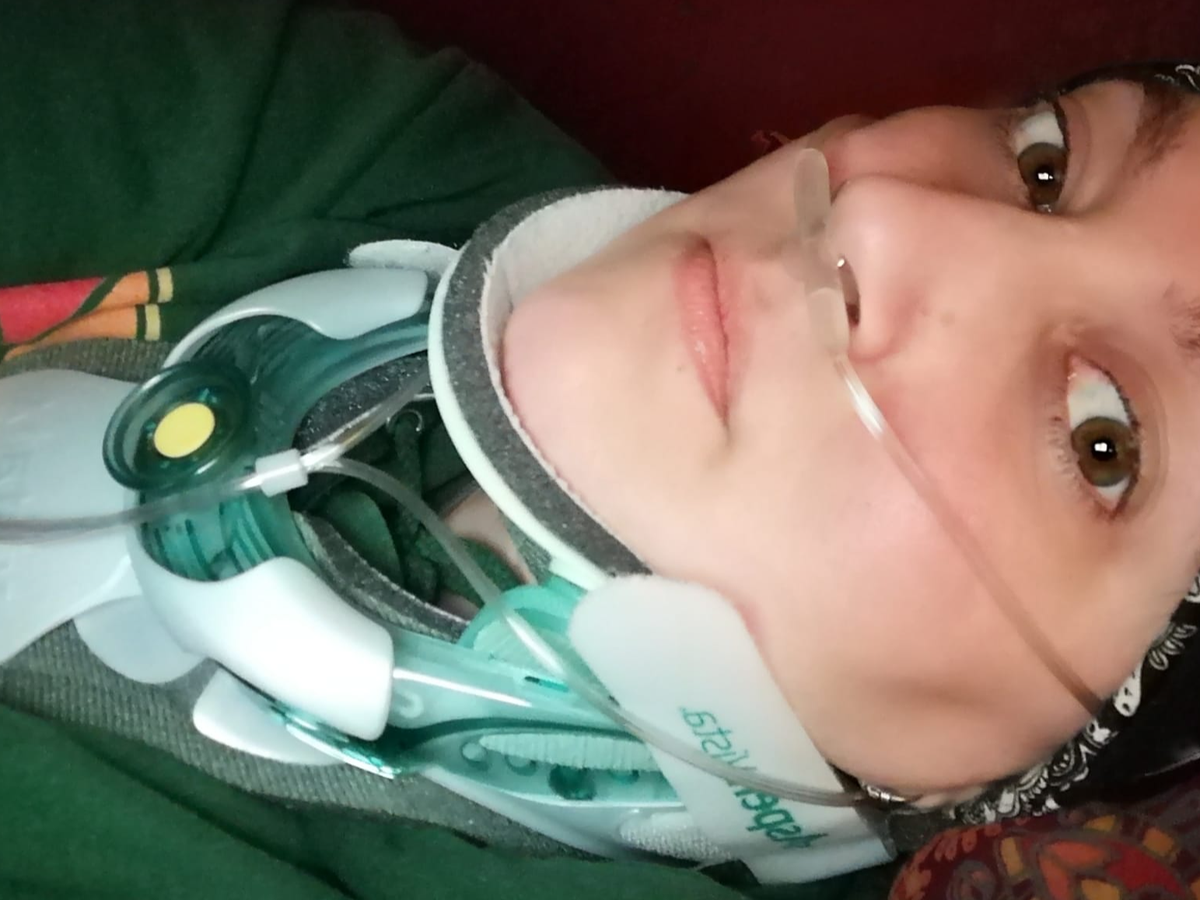 Um überhaupt zu überleben, muss sie Tag und Nacht mit einer stabilisierenden Halsorthese liegen. Ohne diese verschlechtert sich ihr Zustand sofort deutlich.