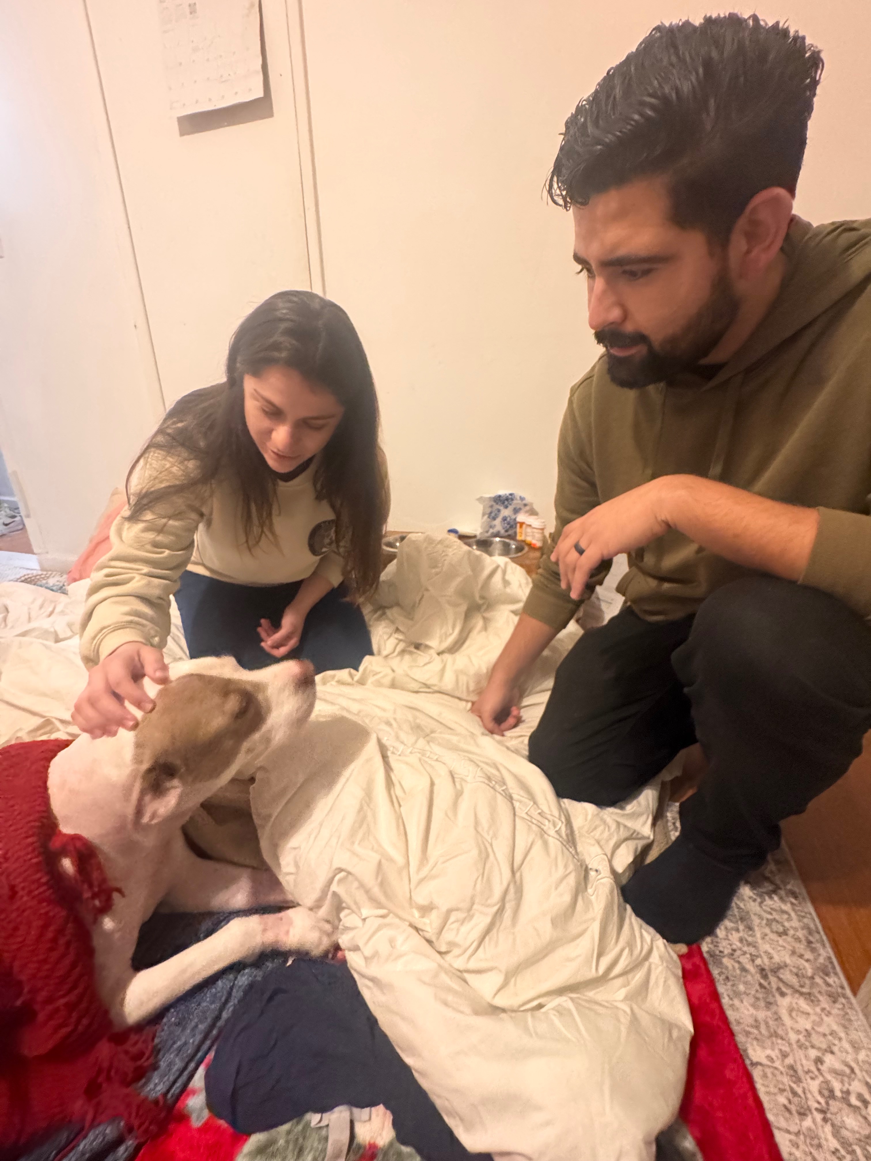 Recently, I had to undergo an emergency C-section hysterectomy, and while I’ve been recovering, Chuchito has been my constant companion. From the moment I came home from the hospital, he never left my side. He lay beside me when I couldn’t move, walked slowly with me when I started to walk again, and watched over me with the purest love.