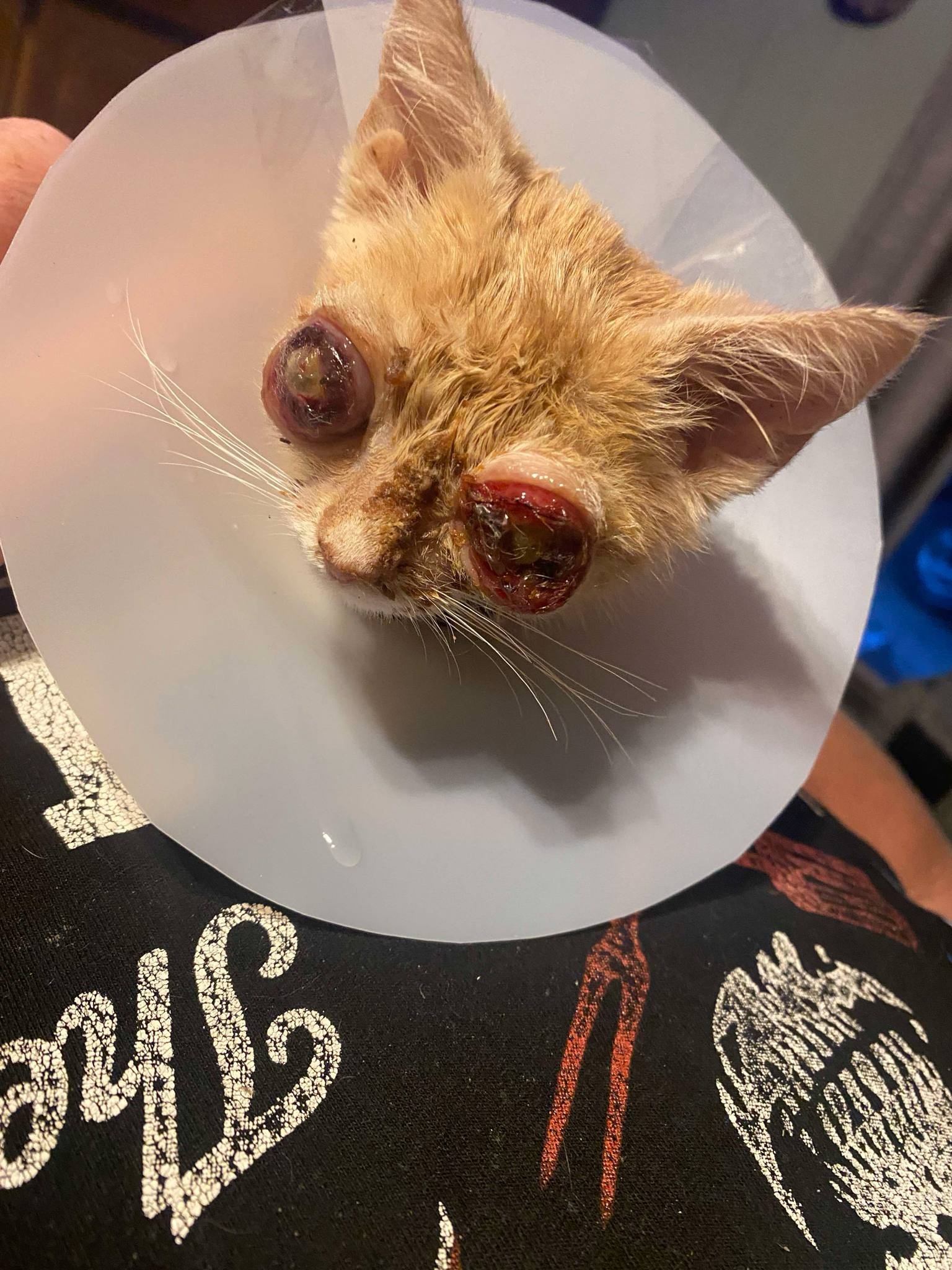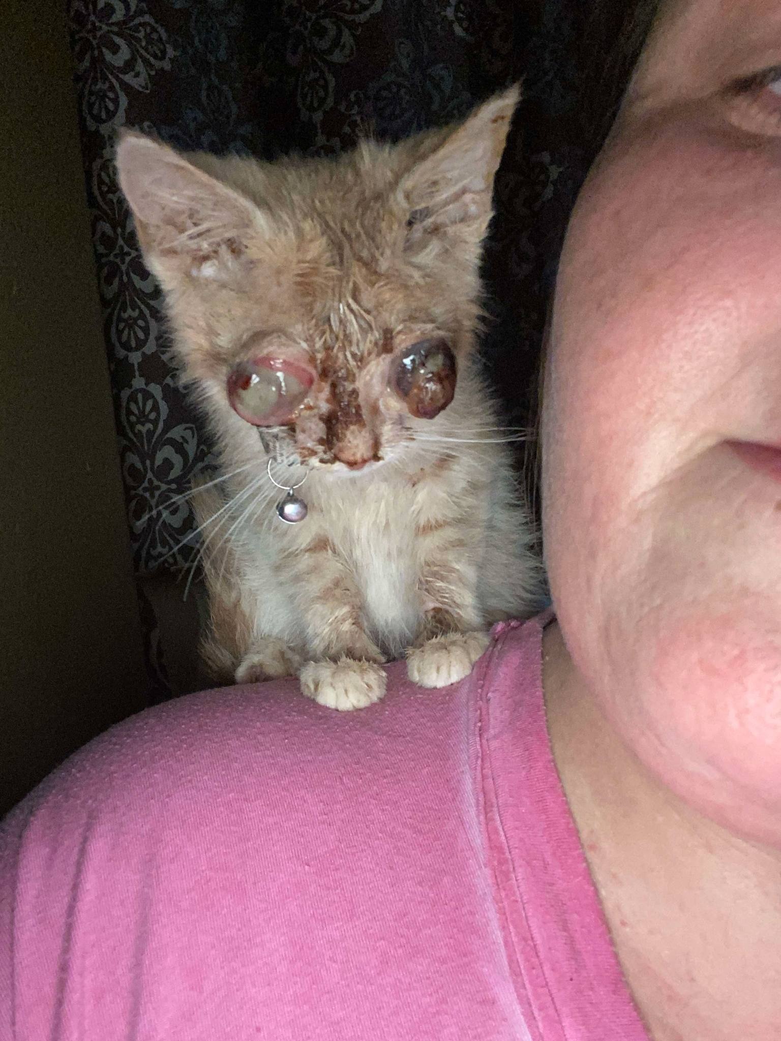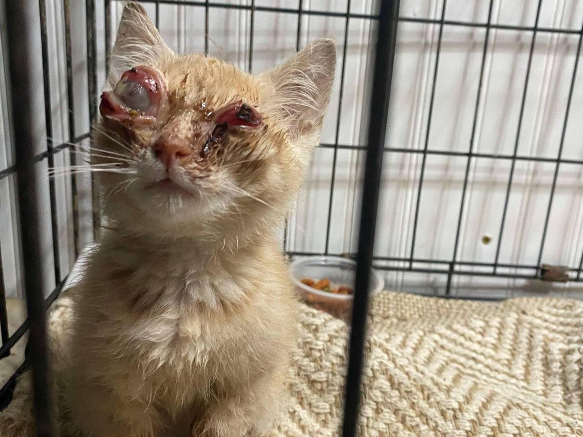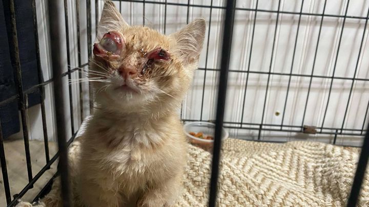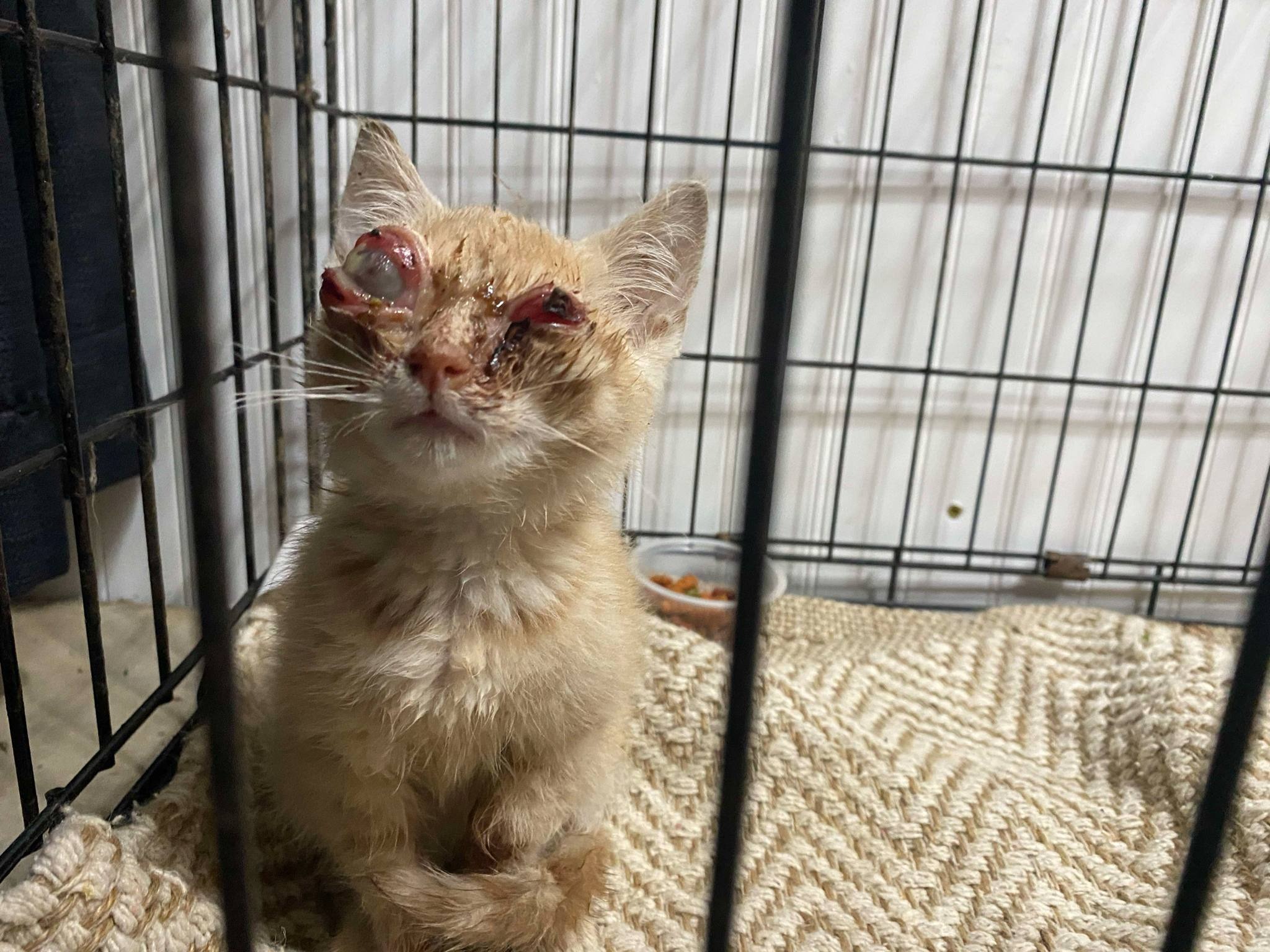 Cinnamon was rescued in rough shape—underweight, struggling to see, and in need of urgent care. My sister found this young cat near her driveway, unable to see and in obvious pain. Her eyes are severely swollen, and one is dangerously bulging. It's heartbreaking to see her struggle just to navigate, and we knew we couldn’t turn our backs on her.