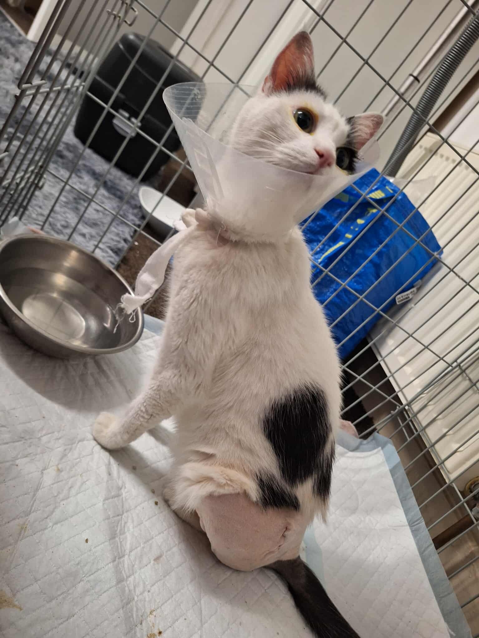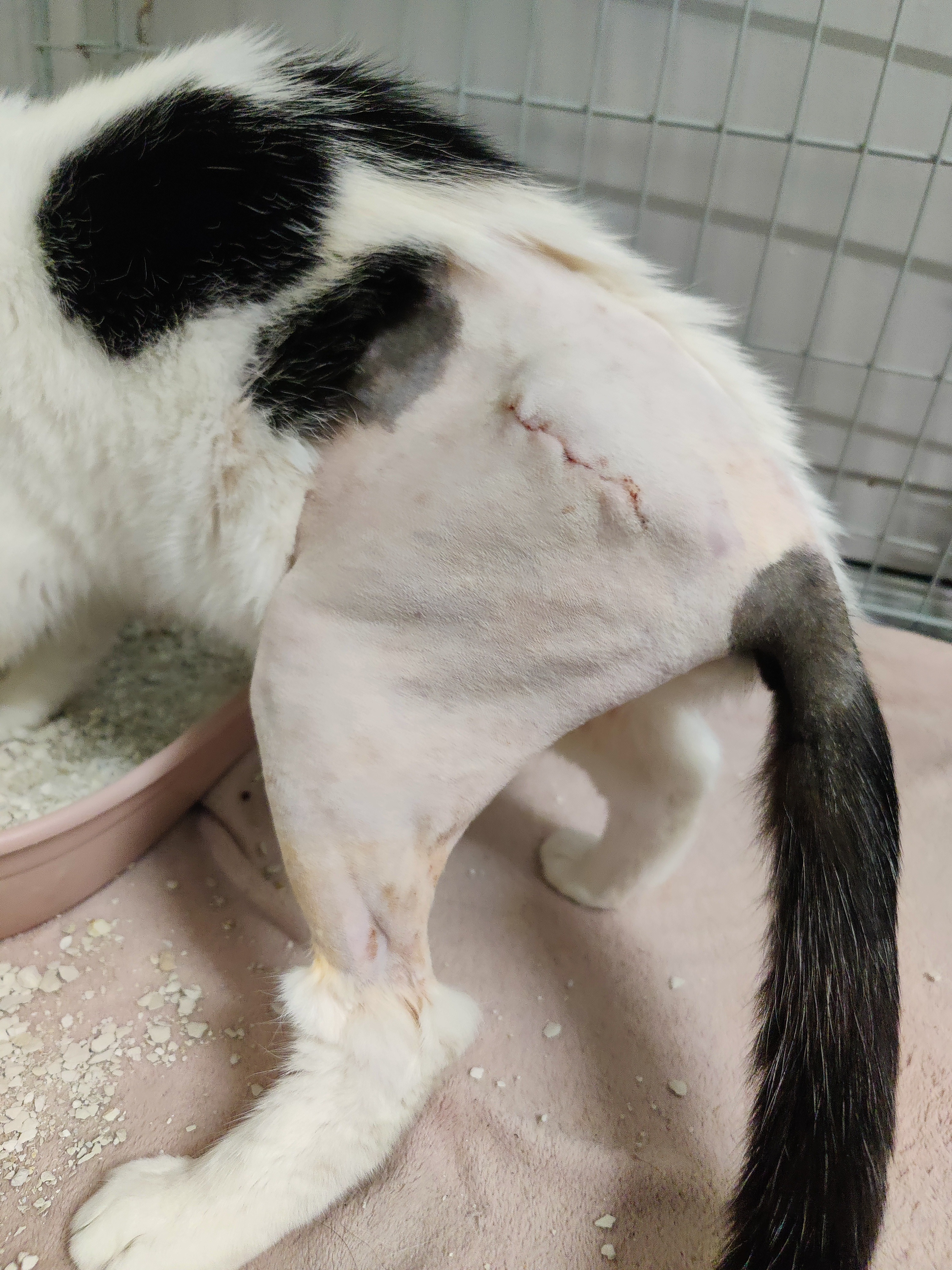 Chmura (Cloud in English ❣️) probably have been involved in a car accident where he broke his pelvis and left hip.