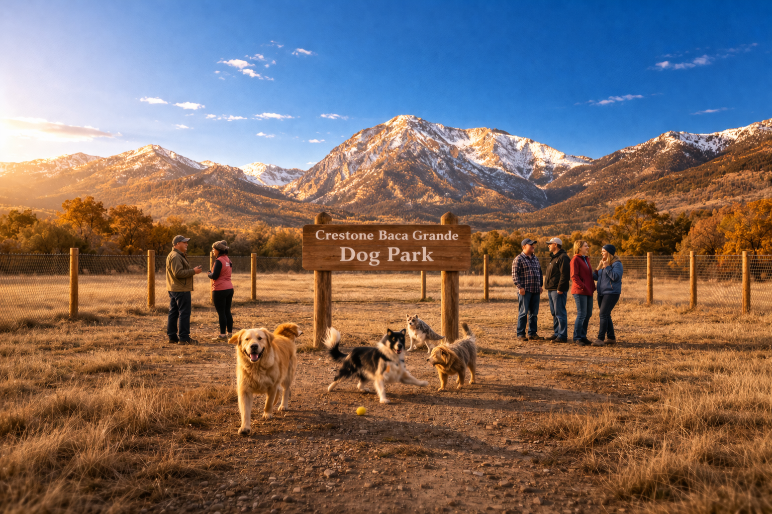 The Baca Grande Property Owners Association is excited to help turn a resident-driven dream into reality: a dedicated off-leash dog park for our community in Crestone, Colorado! After a successful petition was presented to the POA Board in November 2025, the Dog Park Project is now in active planning. The park will feature a 0.9-acre large dog area and a 0.1-acre small dog area, providing a safe and welcoming space for dogs of all sizes to play and socialize.
