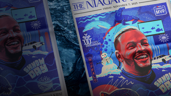 After fielding over 450 applications from Western New York classrooms, more than 50 students and counting have benefited from the initiative launched this season by the Buffalo Bills offensive lineman and his Dion’s Dreamers foundation. Between September and October, a fourth-grade class from Hyde Park Elementary School went to the Penn Dixie Fossil Park & Nature Reserve; an eighth-grade group from Dunkirk Elementary School toured the Bills’ Highmark Stadium; and for the most recent trip, a kindergarten group from Charter School for Applied Technologies (CSAT) visited the Aquarium of Niagara with Dawkins. The fourth and final “Shnow Day” will be held in December, when a sixth-grade class from Harvey Austin Elementary School will attend the Buffalo Battleground arcade park.