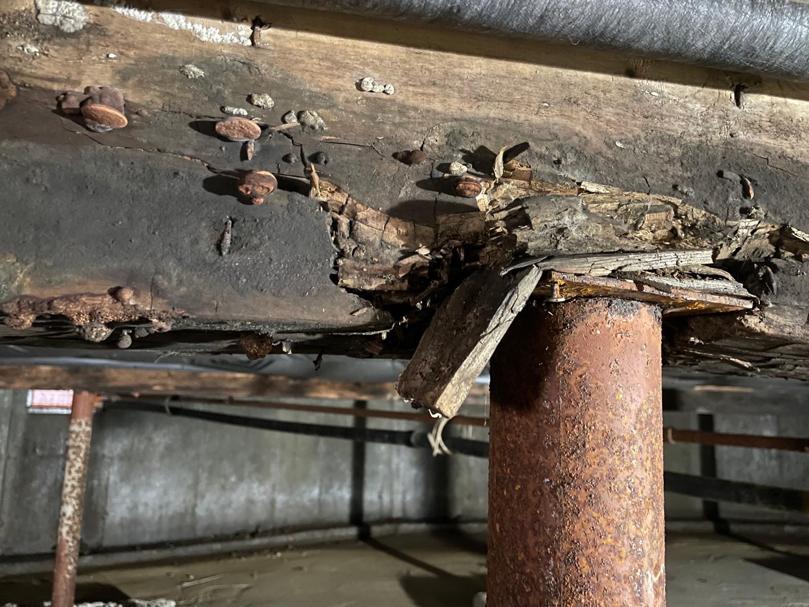 Replacement and reinforcement of critical support beams, floor joists, strapping and some insulation