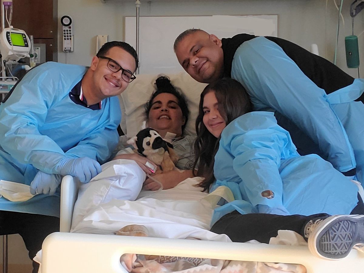 Eileen and her husband, Carlos, contracted COVID and were admitted to the hospital on August 13, 2021.  Both are teachers and were not able to begin this year with their students.  Carlos recovered within a few weeks and was able to return to work, however, Eileen’s condition worsened requiring her to be intubated to a ventilator and heavily sedated within a couple of weeks of being admitted to the hospital. Later she had to get a tracheostomy to keep her connected to the ventilator. She has battled pneumonia 3 times, along with frequent anxiety attacks when hospital staff attempted to lift the sedation.