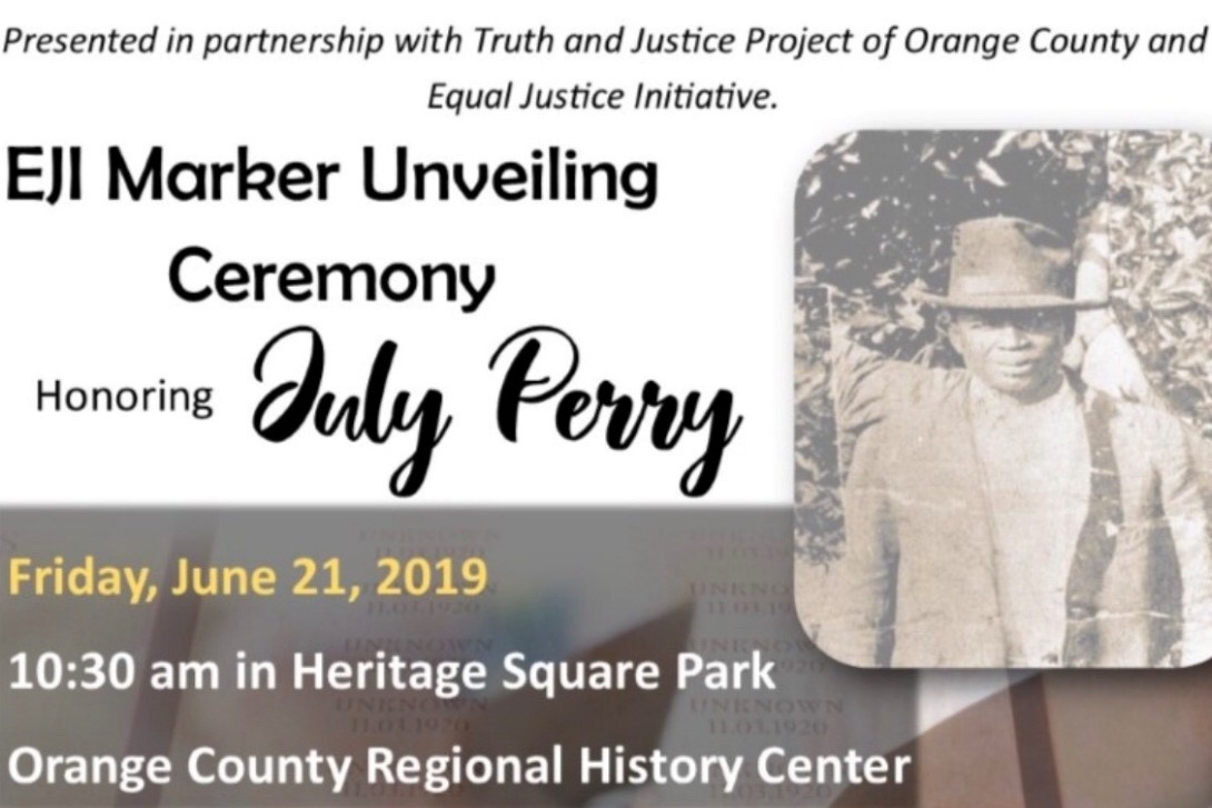 In addition to EJI and the Truth and Justice Project, the marker unveiling ceremony is sponsored by Bridge the Gap Coalition, Inc., Orange County Government, the Orange County Public Library System, the Orange County Regional History Center, and the City of Orlando.