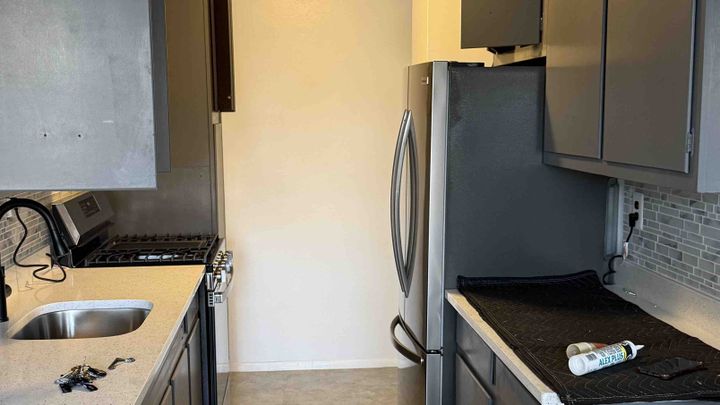 • Kitchen stripped bare – no sink, no counters, no fridge, no cabinets.