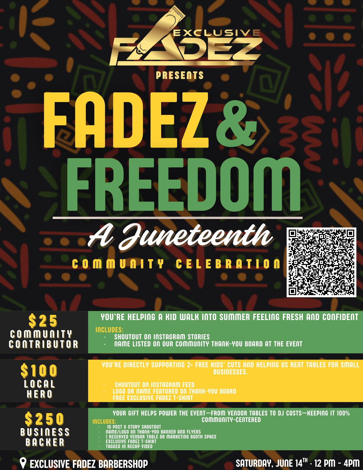 This Juneteenth, I’m hosting a free community event to celebrate freedom, unity, and empowerment. One of the highlights of the event will be providing free haircuts for kids, helping them feel confident, valued, and celebrated.