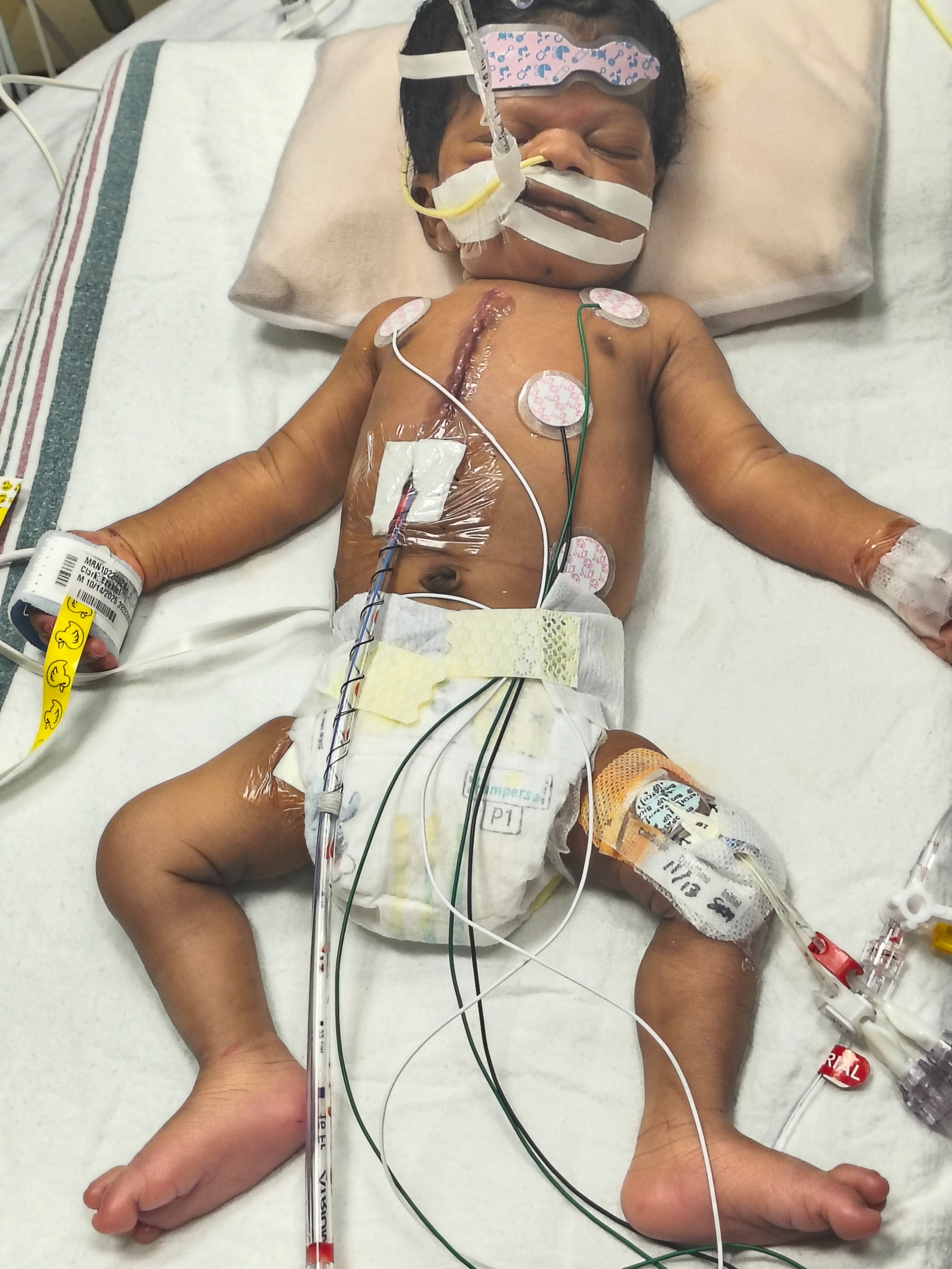 My name is Sam, and my wife Gina and I are the parents of Ezekiel, our precious 3-month-old son. Ezekiel was born on October 14, 2025, and has been in the NICU/PTCU ever since, bravely fighting through serious heart issues(DORV, VSD, CoA). He is a true warrior. After enduring a TEF repair, esophageal cleft repair, and a hybrid heart procedure, he faced the unthinkable, suffering a 10-minute cardiac arrest followed by another urgent heart surgery less than 24 hours later. While recovering from that second open-heart surgery, he faced another 5-minute cardiac arrest. Despite overcoming these incredible hurdles, he is now facing yet another major heart surgery. His strength is unmatched. Every day, we travel an hour and a half—sometimes more—each way to Mott's Children's Hospital in Ann Arbor to be by his side. Some days, we make this 100-mile round trip up to three times, all while caring for our three other children, ages 9, 7, and 15, who are in school.
