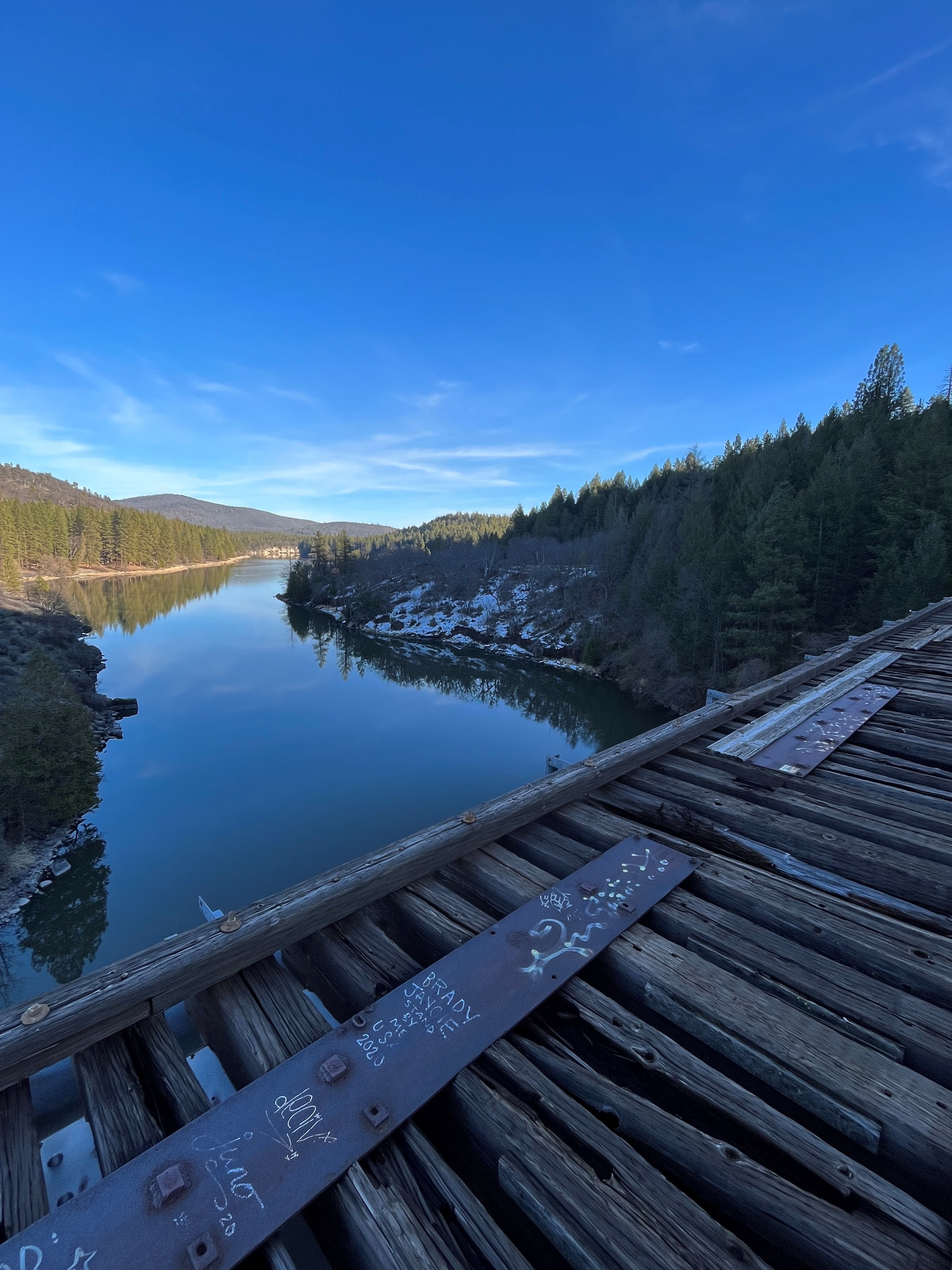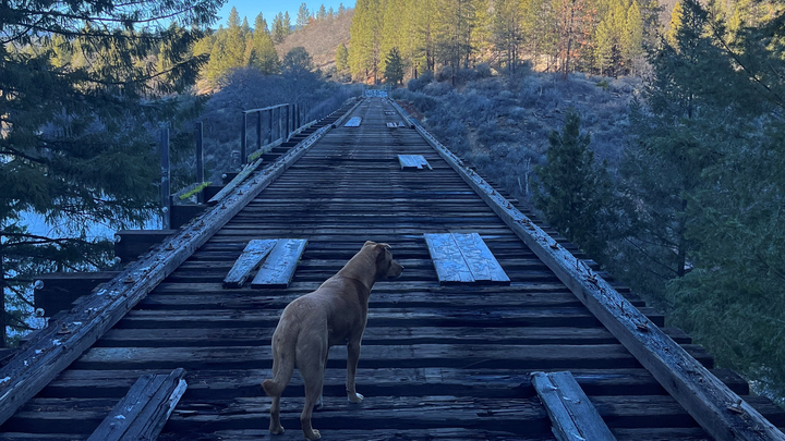 Ten miles from the southern terminus in Burney is The "Stand By Me" Bridge (pictured at the top of the page). This bridge is unfit for safe travel and needs to be retrofitted with a new top deck to facilitate passage across the Pit River near Lake Britton. Right now, humans, horses, and cyclists looking to ride the rails have to unload at a turnout along the 89 in order to start their adventure.