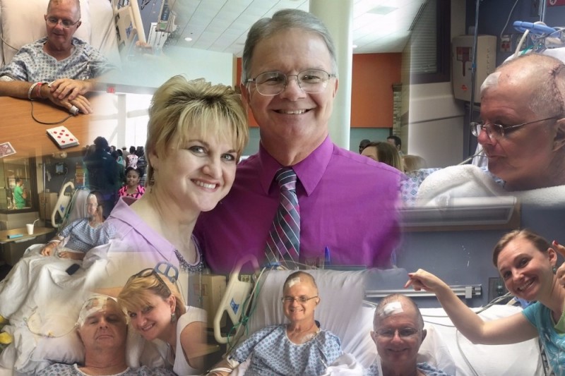 For those who are just hearing about Kevin’s condition, it all started with ocular issue on May 17. Kevin went to two different optometrists both with the same prognoses, eye floater. Things still did not feel right so he went to a third Doctor who then referred him to a neurologist. On June 14th the neurologist said that Kevin had had a stroke according to a MRI. A second MRI was not done. Kevin was prescribed medication. This medicine along with the constant headache made Kevin very, very tried. He was so medicated that he was not able to make it to the Regional Convention they had planned. On July 10th he went to Columbus for the Regional Convention and when he got up one side of his body was not working. An Ambulance was called; Kevin was taken to the hospital. If he had not gotten up that day, it would have been his last, he would have died. Once Kevin got to the hospital doctors were being very hush, hush. Eddie, Kevin’s son in-law pushed the issue and found out that Kevin has a brain tumor. If operated on in Columbus, Kevin would lose 100% of his vision. It is a grade 4 Glioblastomas (GBM) tumor the size of a tennis ball and had reached that size in just one month. Like many tumors types, the exact cause of Glioblastomas is unknown. It took a week to get Kevin airlifted to Atlanta. On June 25th Kevin had surgery to remove the tumor. There were complications because of the medications he had been put on and he was hemorrhaging. His blood count went from 9.5 to 5, then 4.7 before they were able to stop the bleeding and take care of the blood clot.