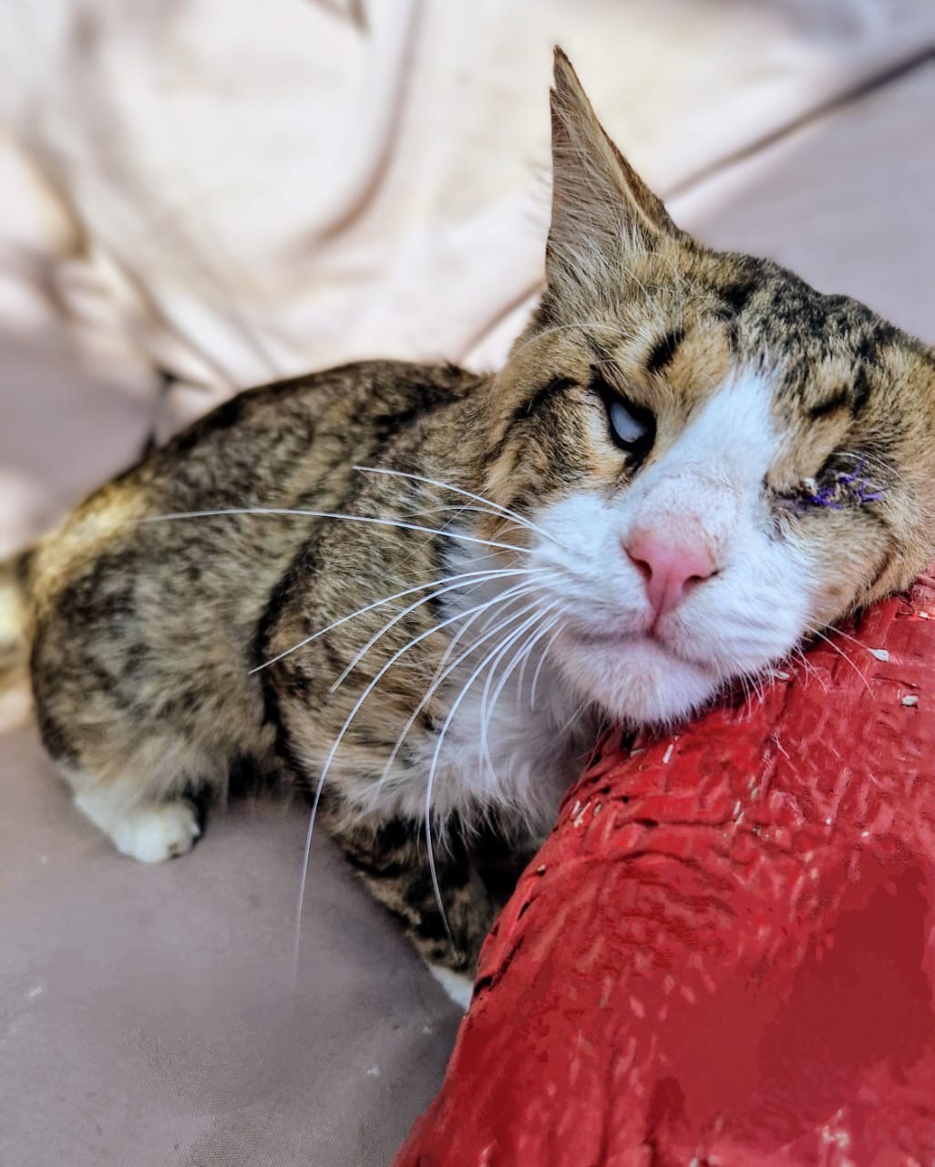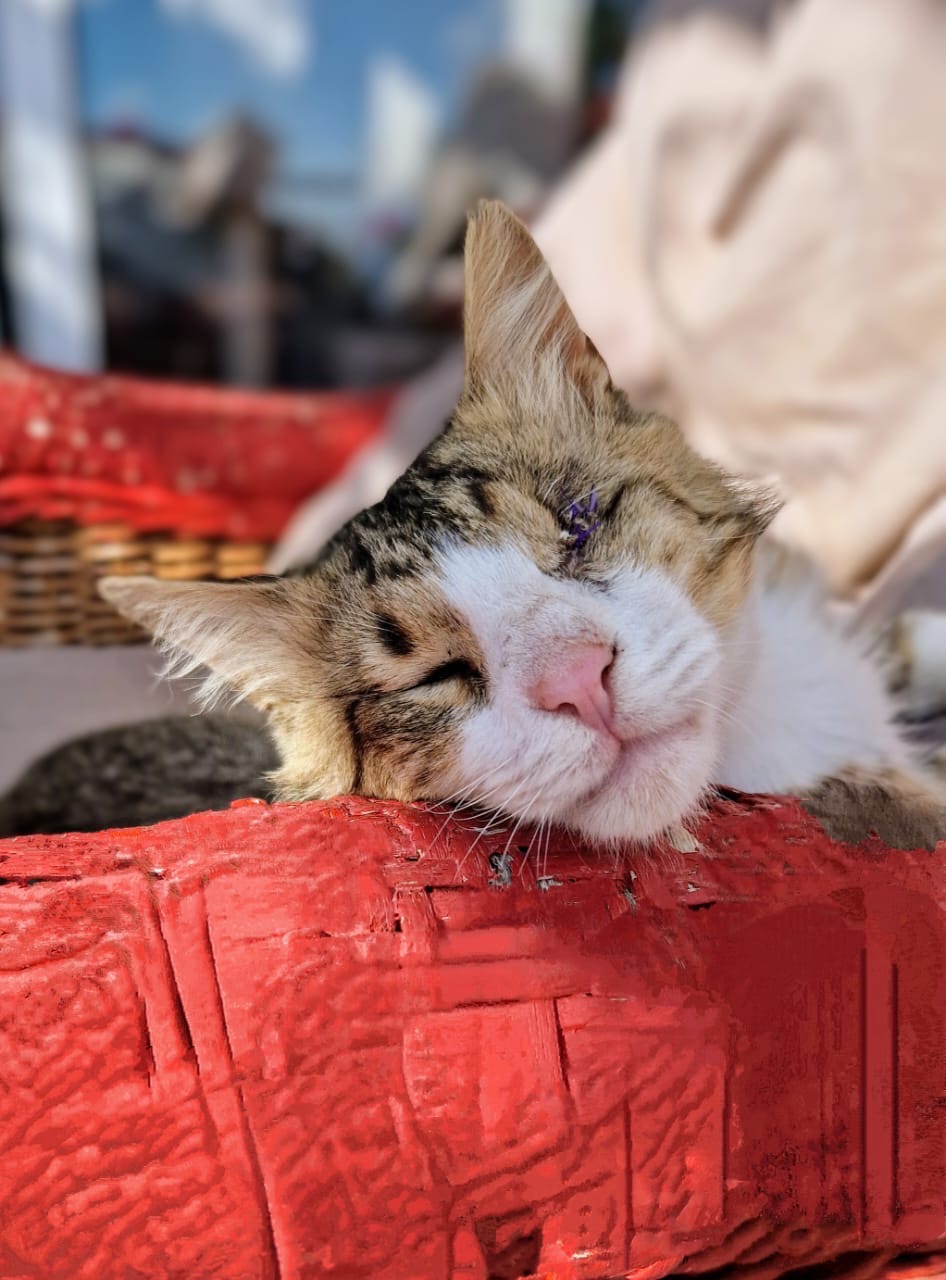 Hercules (affectionately called Hercy-Percy) was rescued during a TNR effort at the Aliathon Resort by Devon (Paphospurrs.com) and Luanne (Fishingforfelines.com). Like Tima, Hercules is blind, and one of his eyes had to be removed due to infection. But his blindness doesn’t stop him from being brave, loving, and full of personality.