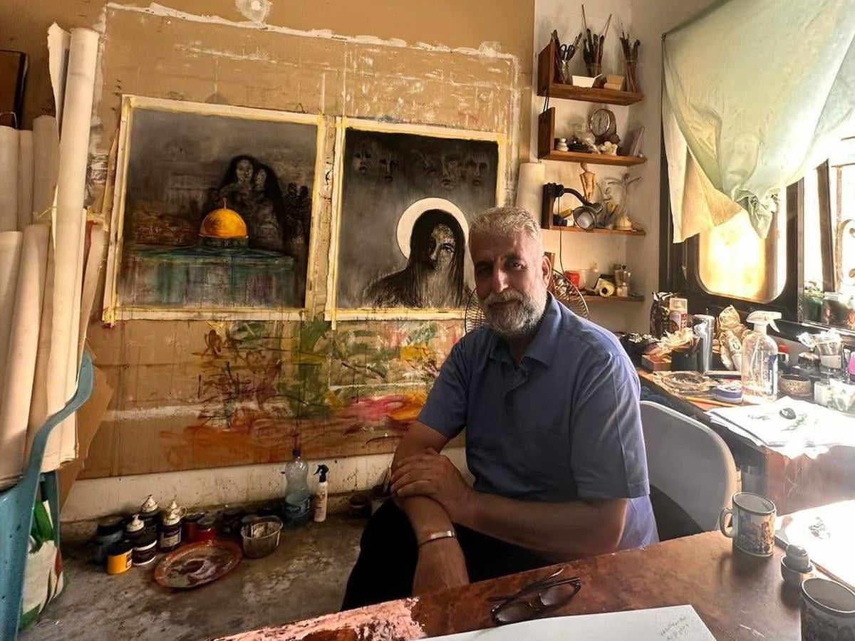 He lost his home, his studio, and all of his artistic works that he had worked on for 35 years because of the war on Gaza, as well as his large studio called Windows for Contemporary Art. He lost all of his artistic works