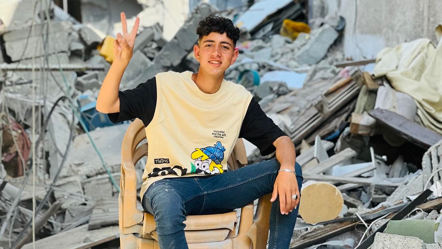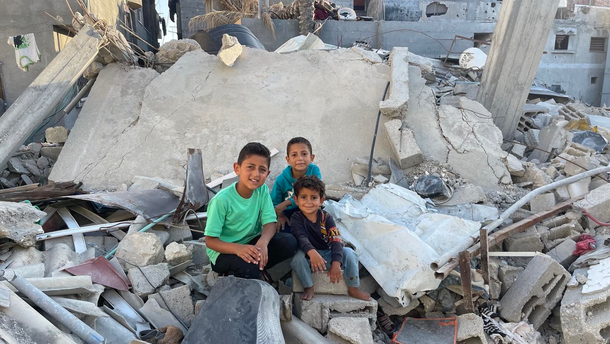 (Adam , Abd ar Rahim and Bara in front of the rubbles of our house )