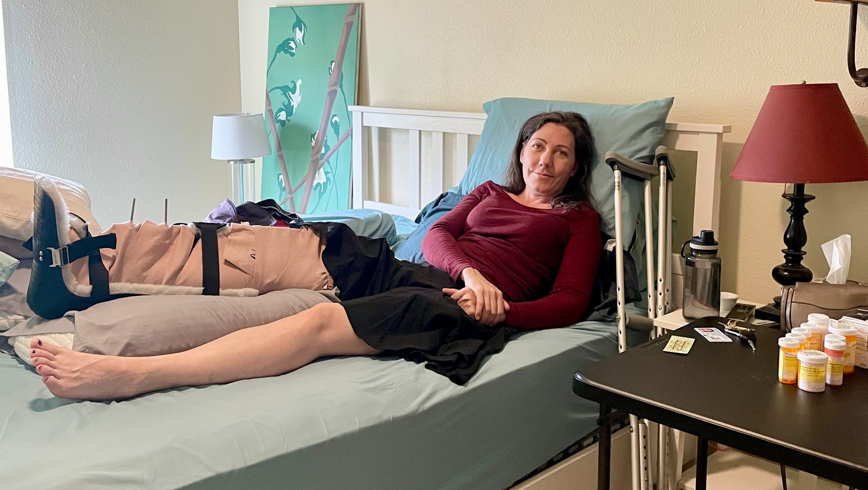 Though she’s just now returning to her studio, her mobility is limited, and she cannot drive or stand for long periods. She cannot put any weight on her leg until at least September and remains unable to work or support herself financially. She can sell some jewelry online, but website sales cannot make up for lost teaching and event revenue.